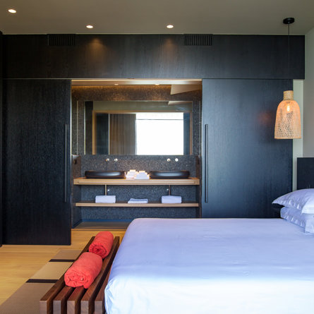 Sea view, Private terrace, Air conditioning, Queen size bed, Closet, Desk, TV, Smart TV, Apple TV, Satellite, Sound system, Black out curtains and Safe.