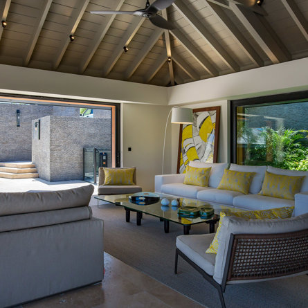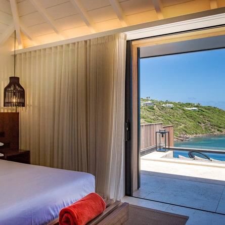 With equal-size bedrooms and an ample wooden pool deck overlooking charming Marigot Bay, the relaxed and modern Villa Blackstone spans over two stories and is a convivial hideaway for getaways among friends.