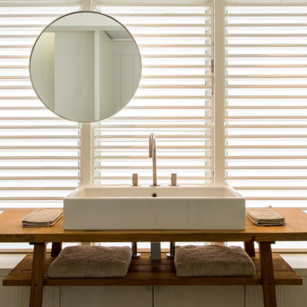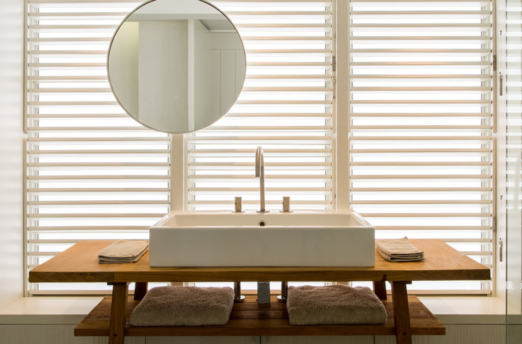 Ensuite bathroom, Walk-in shower, Outside shower, Two sinks, Hair dryer, Open toilet.