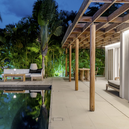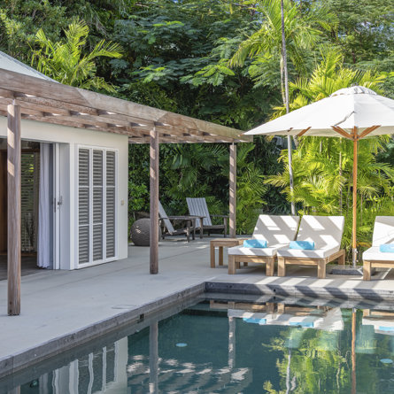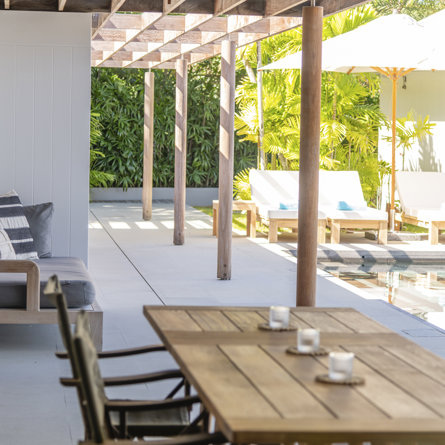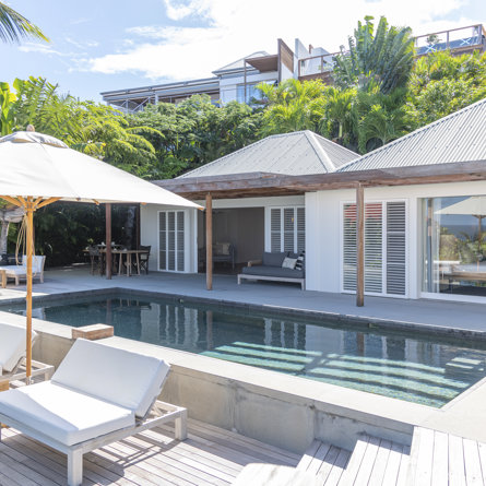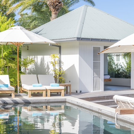 Compact yet well-considered Villa Aliza is split into separate bungalows for living and sleeping, offering everything a family or friend group needs to enjoy the excitement of St Jean and Eden Rock – St Barths, just a 5-minute walk away.
