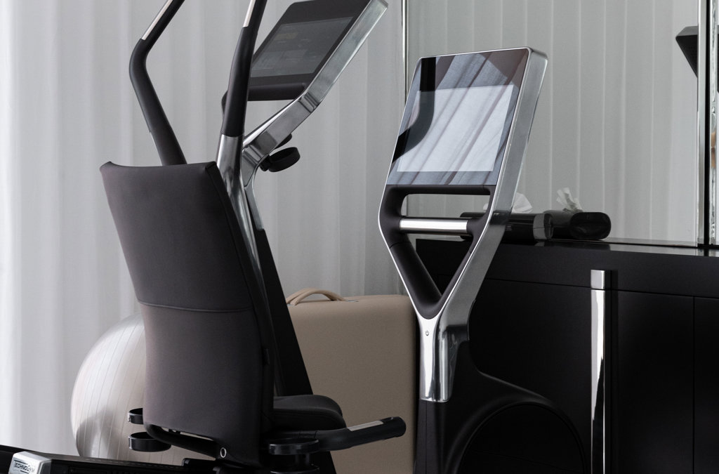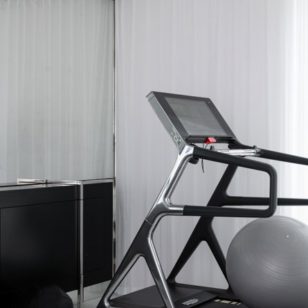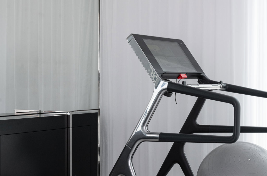 Air conditioning, Treadmill, Elliptical bike, Weights, Yoga mats.