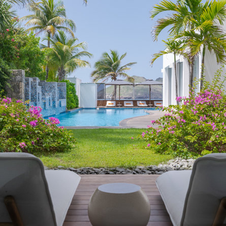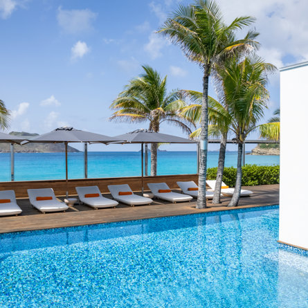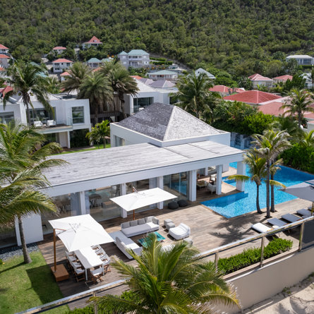 Situated directly on Flamands Beach, Villa Ana Flamands is a charming oasis with its breathtaking ocean and mountain vistas as well as privacy from public view offered by screens. This five-bedroom villa combines luxury with practically and boasts a professional kitchen, a living room, bar, and dining area. At the back, you'll find five contemporary bedrooms, with a primary bedroom and a kids' room. Unwind in the jacuzzi, stay focused in the office, or work out in the private gym.