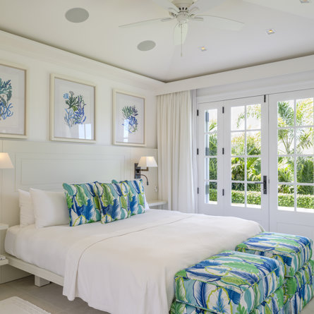 Sea, garden and pool view, Private terrace, Air conditioning, Fan, King size bed, TV, Apple TV, Satellite, Sound system, Walk-in closet, Safe.