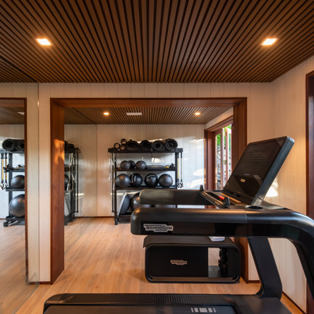 Treadmill, Weight bench, Indoor bike, Elliptical bike, Weights.