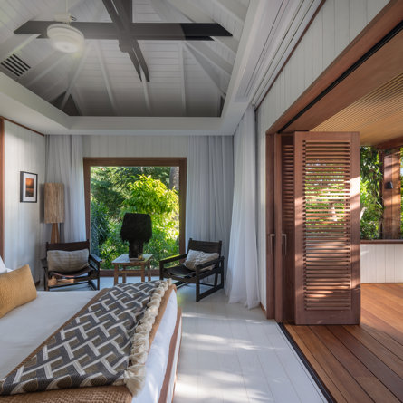 Sea & garden view, Terrace, Air conditioning, Queen size bed, Closet, Video projector, Black out curtains, Safe.