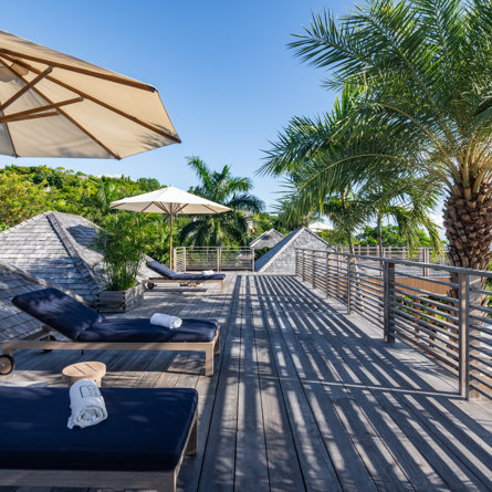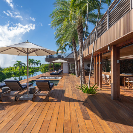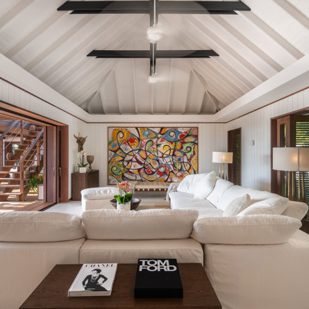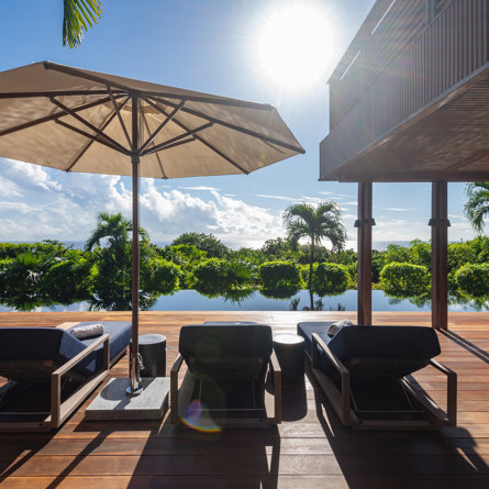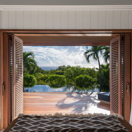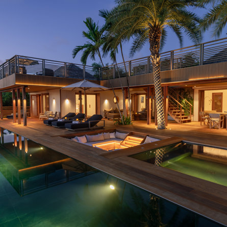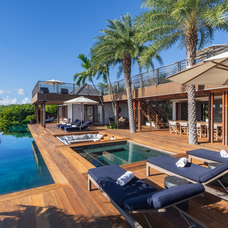 Nestled in tropical gardens, Villa Aura offers privacy and intimacy for large groups or multi-generational families with its bedrooms on a single level, expansive pool and hot tub terrace and rooftop views of the outstanding sunsets over Gouverneur.