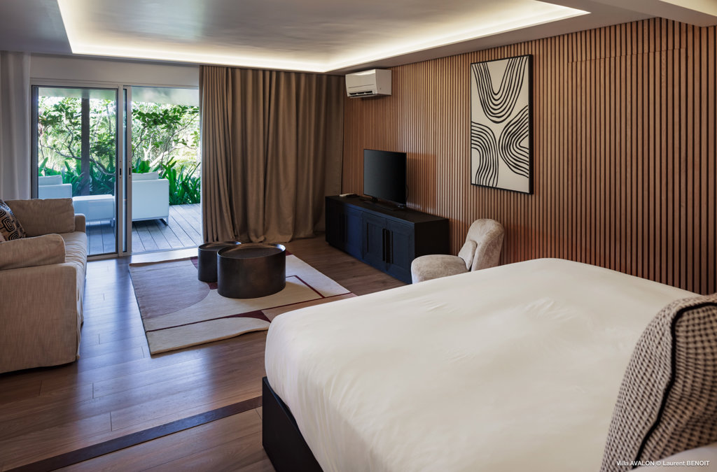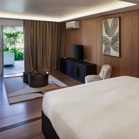 Garden view, Private terrace, Air conditioning, King size bed, Closet, TV, Apple TV, Satellite, Black out curtain, Mosquito screen, Safe.