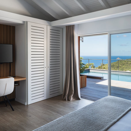 Sea & mountain view, Terrace, Air conditioning, King size bed, Closet, Desk, TV, Apple TV, Satellite, Black out curtain, Mosquito screen, Safe.