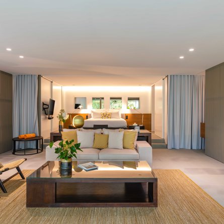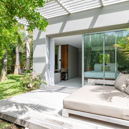 Garden view, Private terrace, Air conditioning, Queen size bed, Closet, Desk, TV, Smart TV, Dish, Apple TV, Black out curtains, Safe.