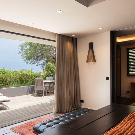 Sea & Garden view, Private terrace, Air conditioning, Queen size bed, Walk-in closet, Desk, Smart TV, Black out curtains, Safe.
