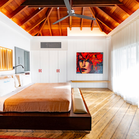 Sea view, Terrace, Air conditioning, Fan, King size bed, Closet, Desk, Smart TV, Mosquito screen, Safe.