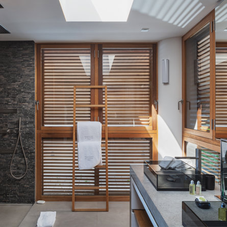 Ensuite bathroom, Walk-in shower, Two sinks, Hair dryer and Separate toilet.