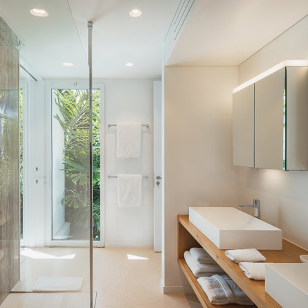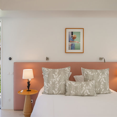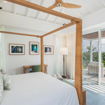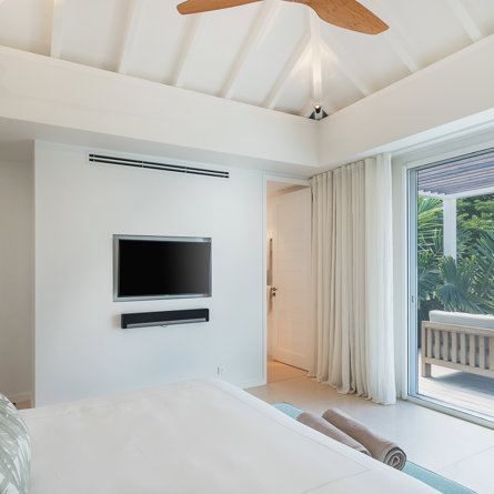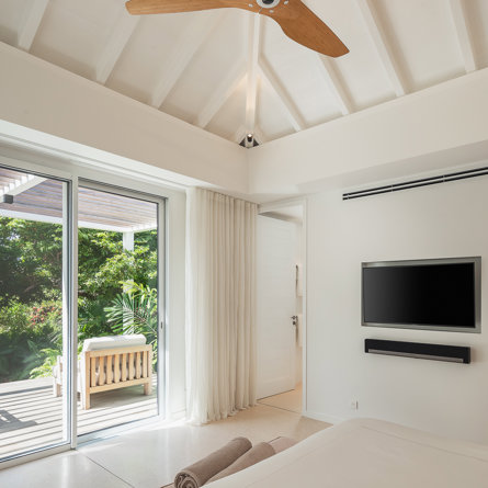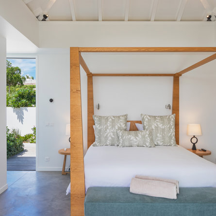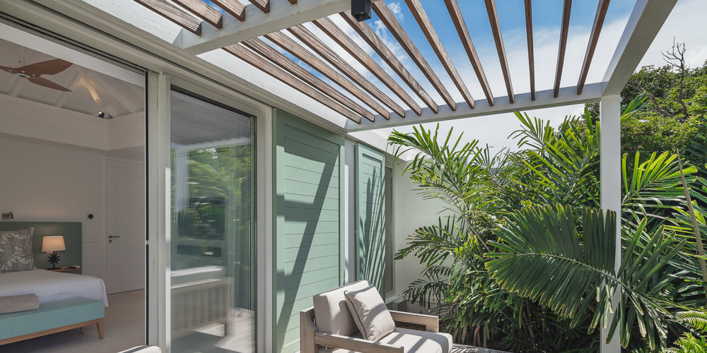 A/C, tropical garden view, King-size bed convertible into twin, TV and Apple TV, sound system, closet, safe, mini-fridge, kettle, Nespresso machine, private terrace, en-suite bathroom with interior shower, 2 sinks and separate toilets, hair-dryer.