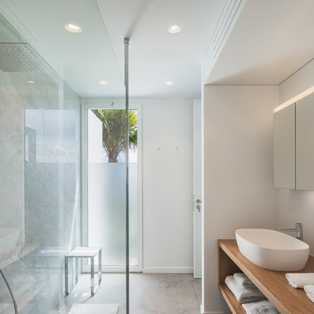 A/C, sea view, King-size bed, TV and Apple TV, sound system, closet, safe, mini-fridge, kettle, Nespresso machine, private terrace, en-suite bathroom with interior shower, 2 sinks and separate toilets, hair-dryer.
