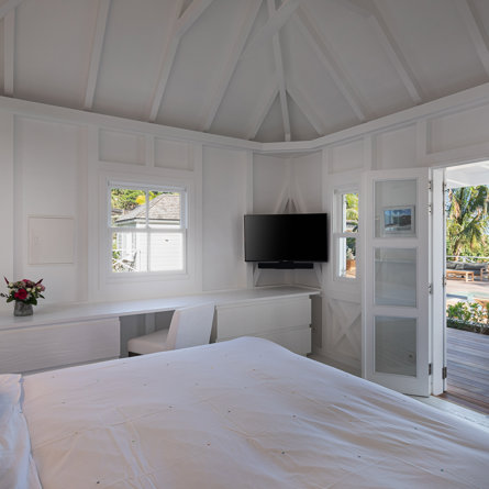 Pool & sea view, Terrace, Air conditioning, Fan, King size bed, Walk-in closet, TV, Safe.
