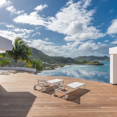 Villa Coco is a bright, open and spacious home with a pleasant garden, gazebo and large deck to enjoy panoramic views, while the inside features modern and refined décor throughout multiple floors, ensuring that friends or couples can enjoy complete privacy.