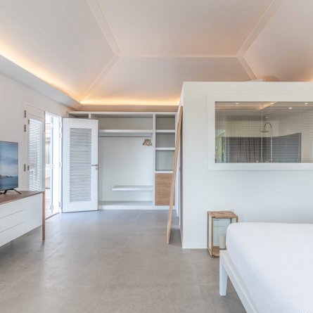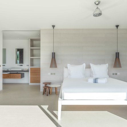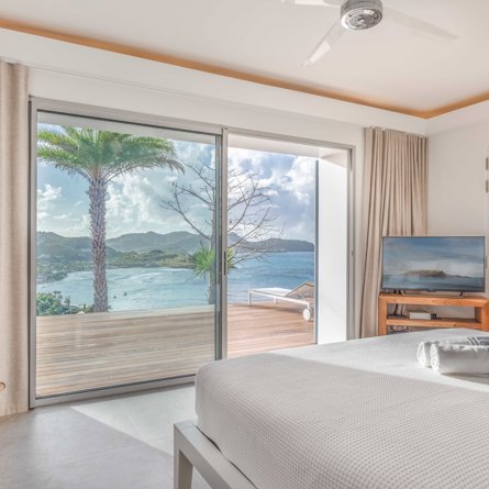 A/C, European King-size bed, Apple TV, safe, CD player, fan, en-suite bathroom, opens onto terrace and outside dining area