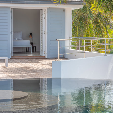 A/C, European King-size bed, Apple TV, safe, CD player, Bluetooth station, fan, en-suite bathroom, located in a separate bungalow, opens onto pool terrace