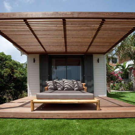 Garden view, Private terrace, Air conditioning, Queen size bed, Closet, Smart TV, Black out curtains, Mosquito screen, Minibar, Safe.