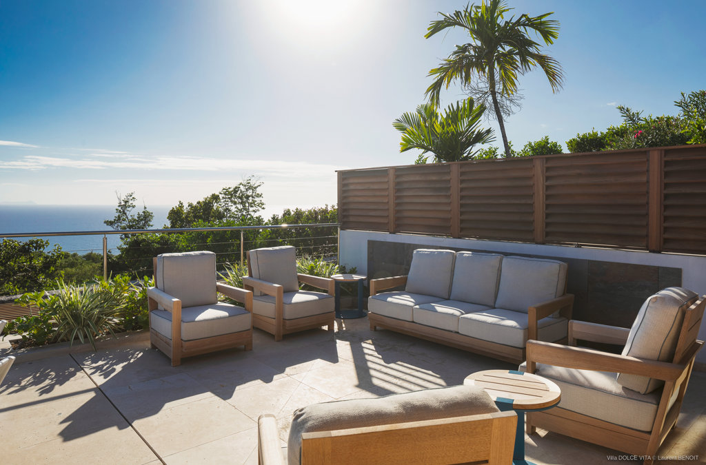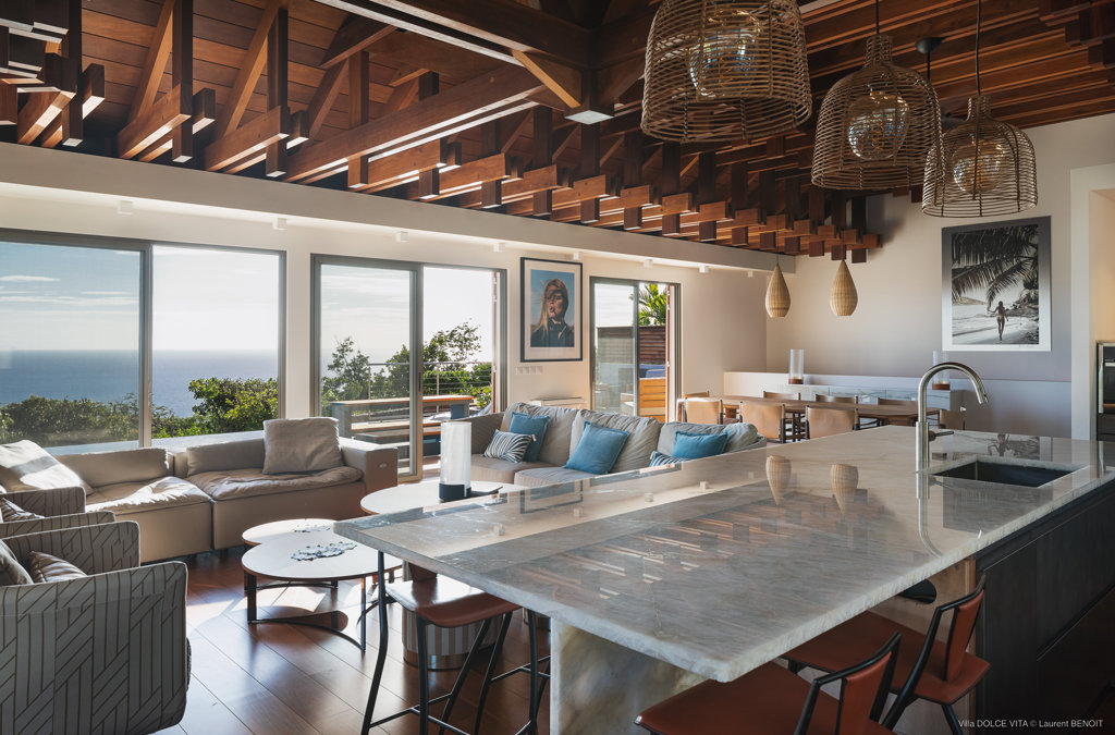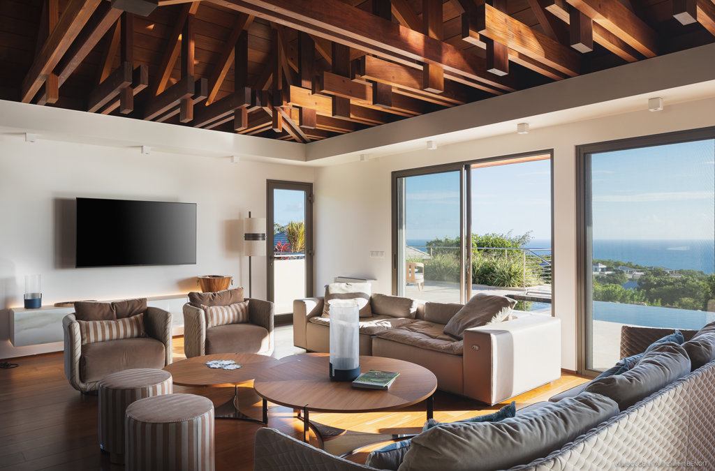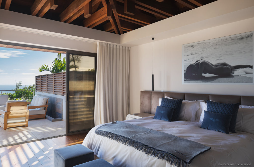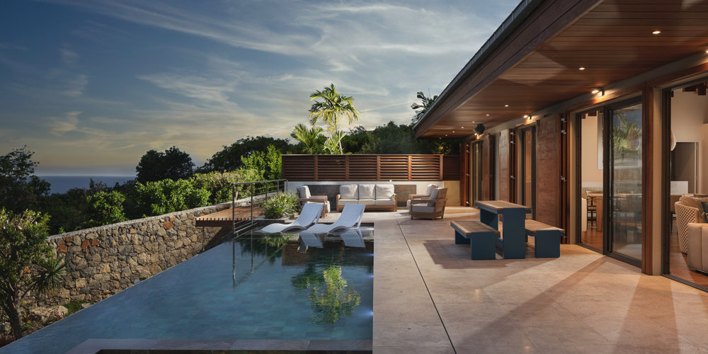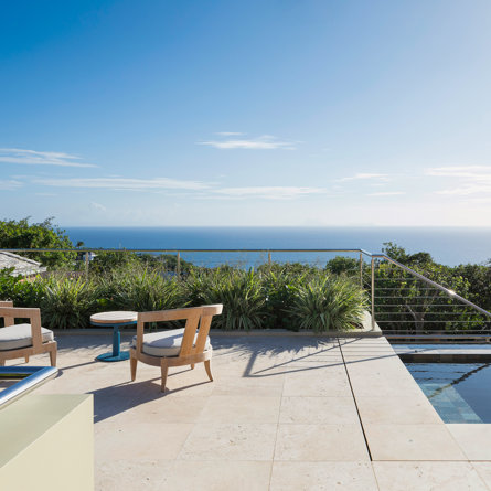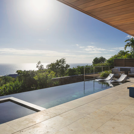 Located on the scenic road to Gouverneur Beach, the two-level Villa Dolce Vita showcases stylish modern décor and beautiful woodwork at every turn. Featuring four bedrooms, this homey villa is the ultimate retreat for families seeking both comfort and luxury. Surrounded by a lush tropical garden and terrace with serene views, it’s the perfect hideaway for total relaxation.