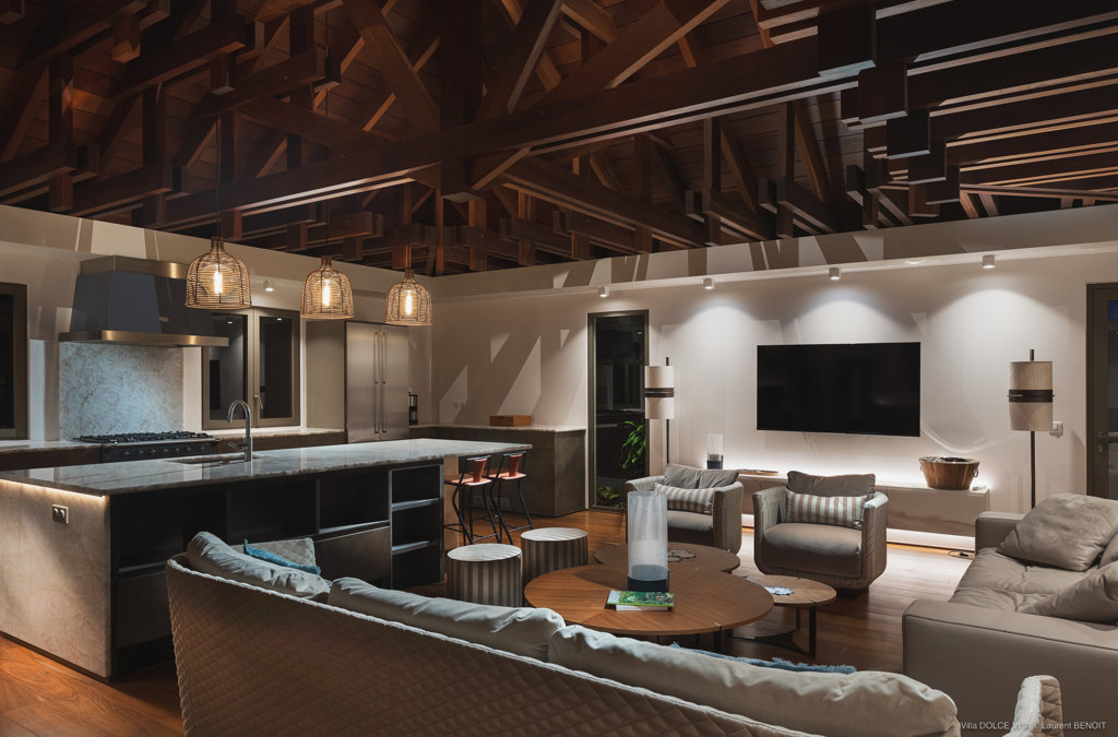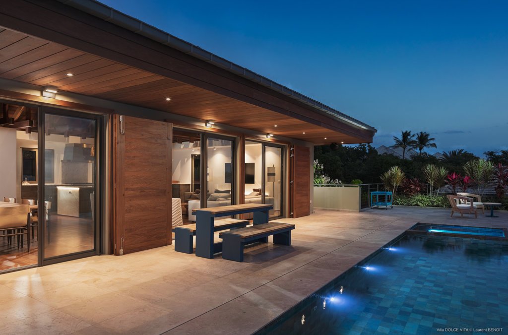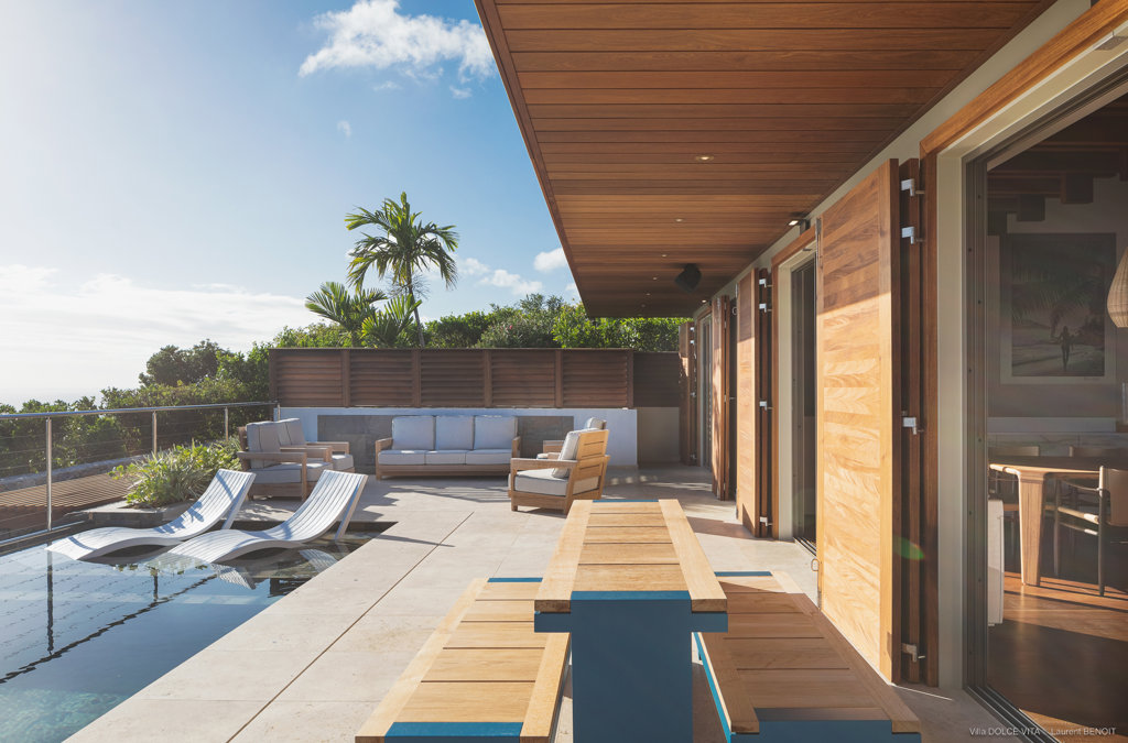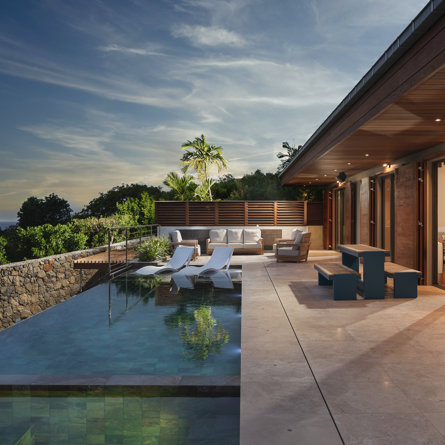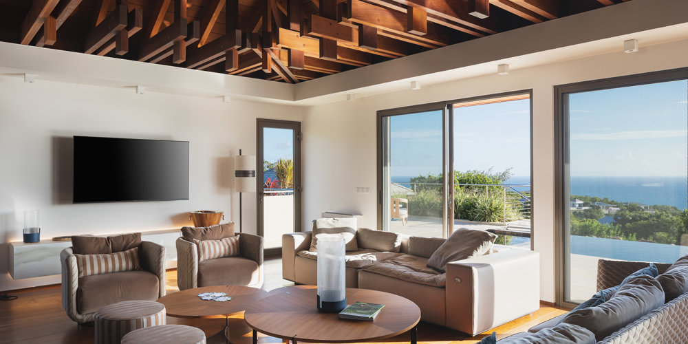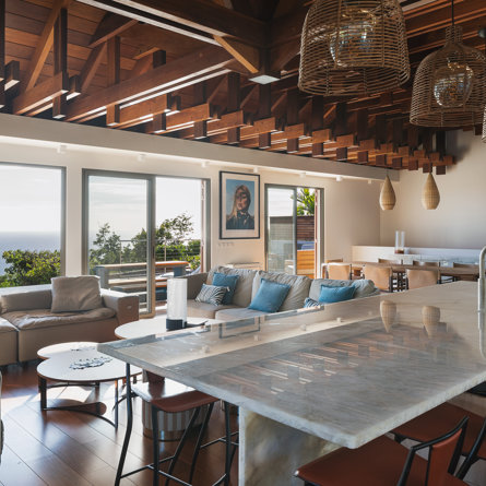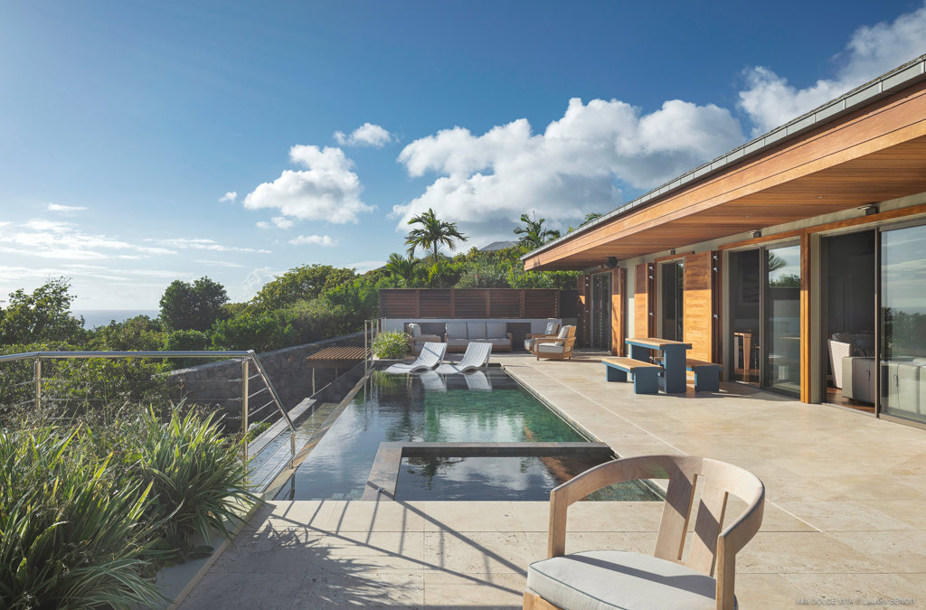 Located on the scenic road to Gouverneur Beach, the two-level Villa Dolce Vita showcases stylish modern décor and beautiful woodwork at every turn. Featuring four bedrooms, this homey villa is the ultimate retreat for families seeking both comfort and luxury. Surrounded by a lush tropical garden and terrace with serene views, it’s the perfect hideaway for total relaxation.