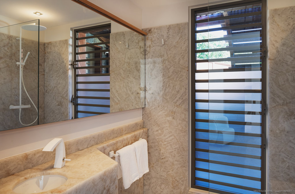 Ensuite bathroom, Walk-in shower, Outside Shower, Sink, Open toilet.