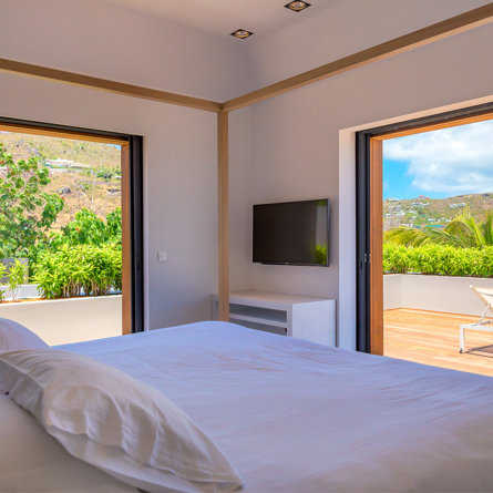Sea view, Air conditioning, King size bed, Walk-in closet, Desk, Smart TV, Dish, Apple TV, Mosquito net, Safe.