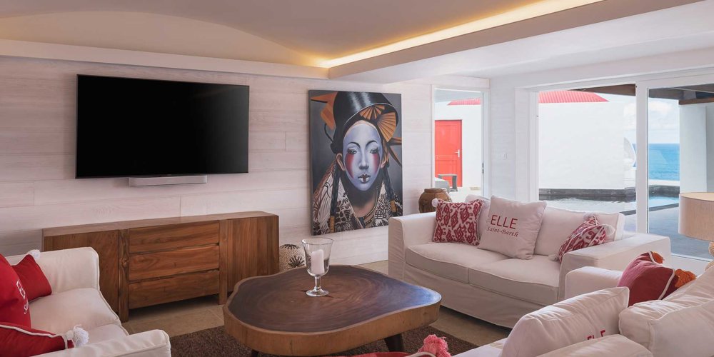 There is something for everyone at Villa Elle, a cool and artistically decorated home with fitness room and theatre room, all spaciously spread over multiple, fully air-conditioned floors with unforgettable sea views and protected from the north-easterly winds.