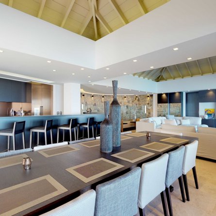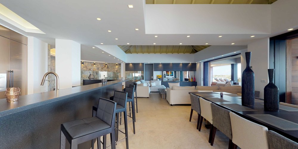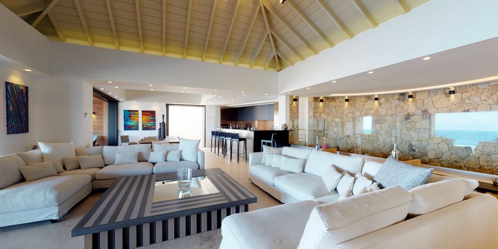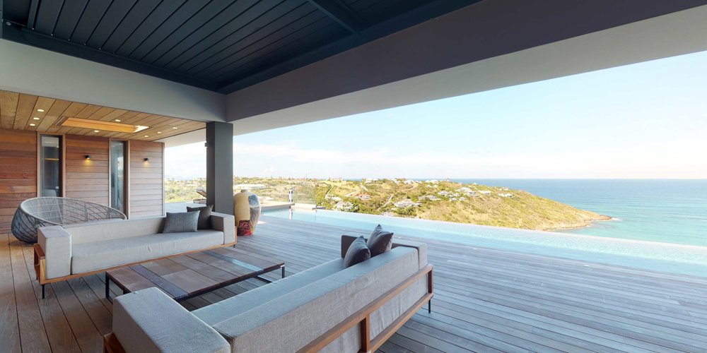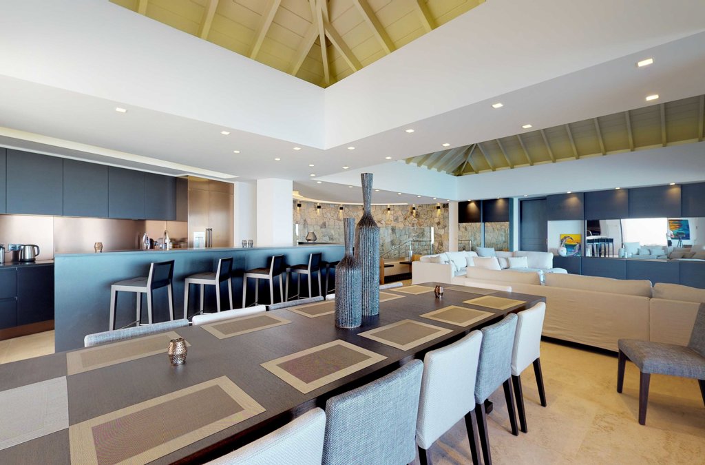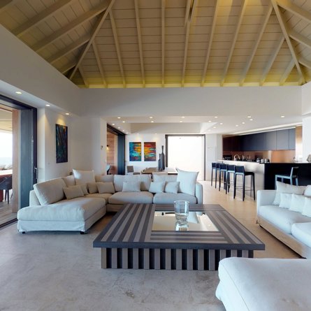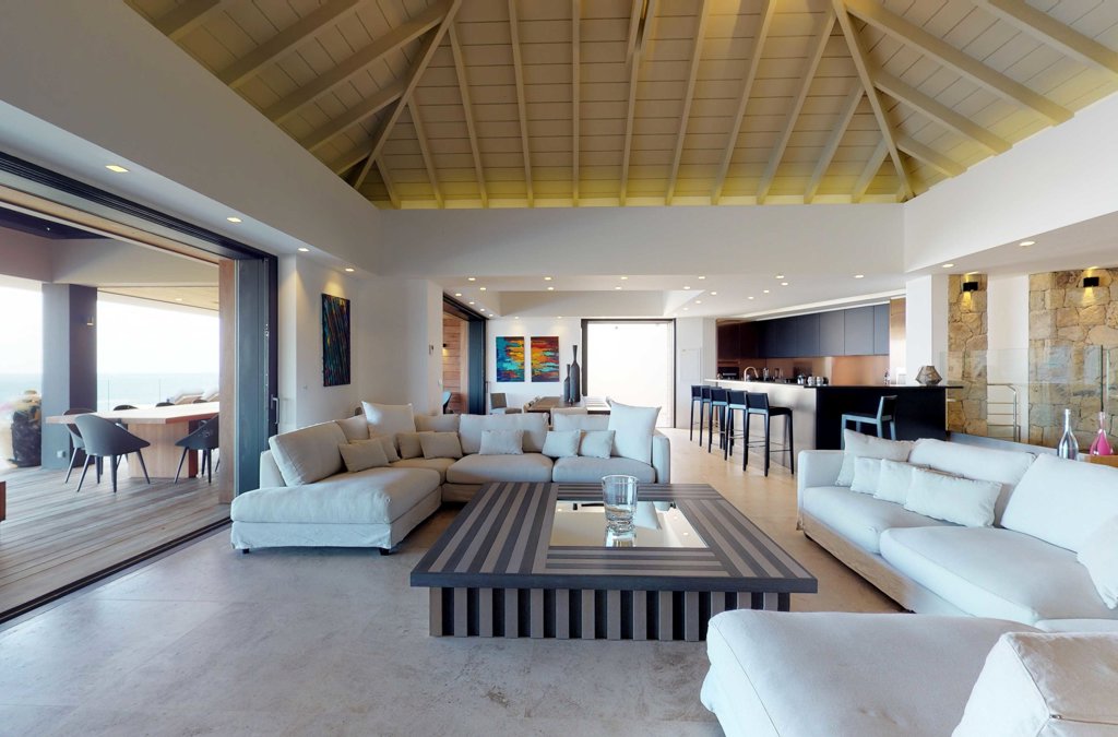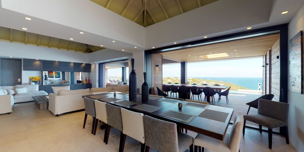 Designed with family in mind thanks to a spacious living room, welcoming deck, and connected rooms spread over two kid-friendly floors, Villa Epicure is a fully air-conditioned home to enjoy quality time together with modern touches and a sweeping vista over Marigot.