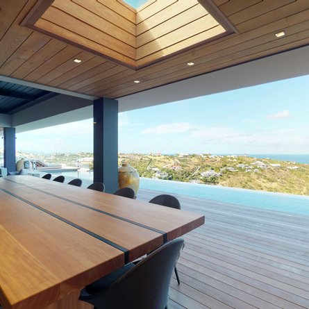 Designed with family in mind thanks to a spacious living room, welcoming deck, and connected rooms spread over two kid-friendly floors, Villa Epicure is a fully air-conditioned home to enjoy quality time together with modern touches and a sweeping vista over Marigot.