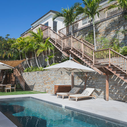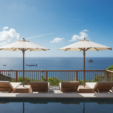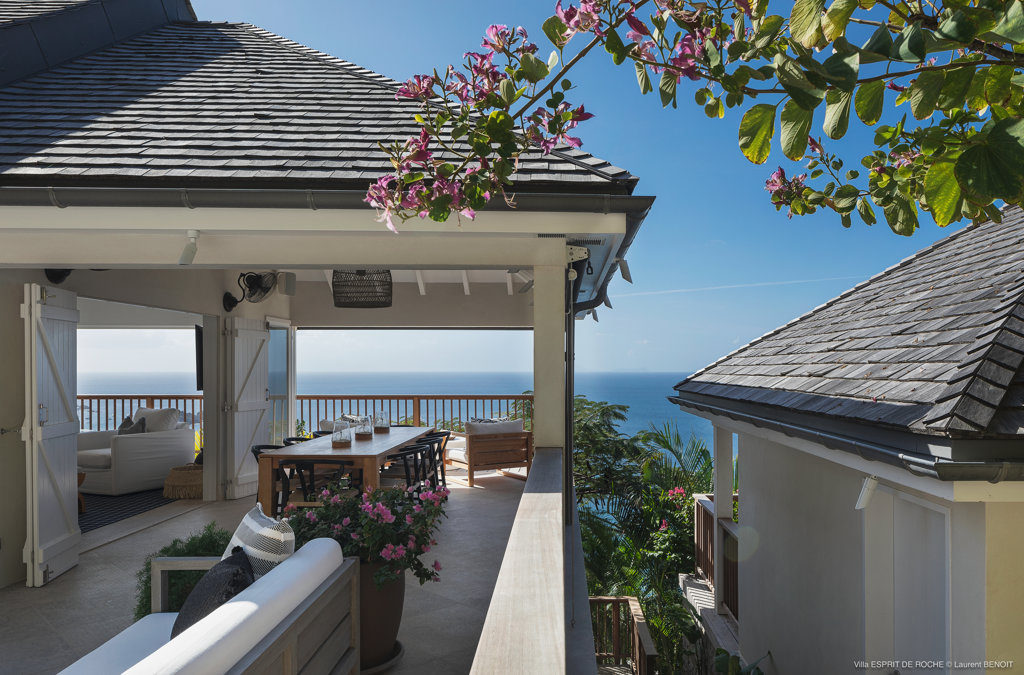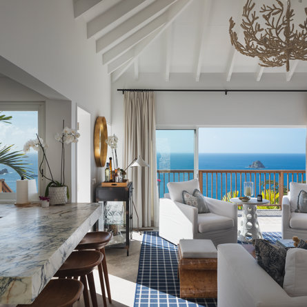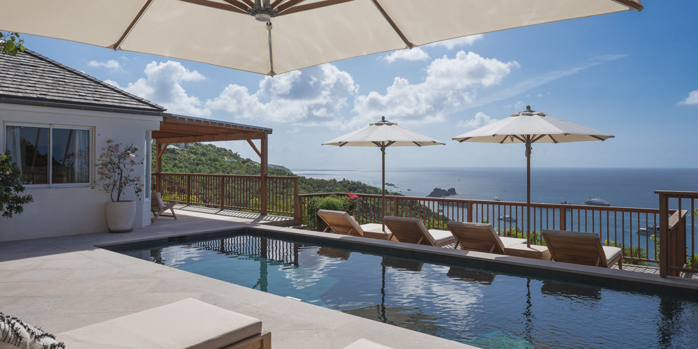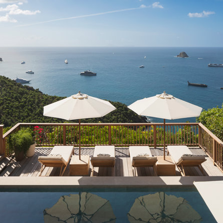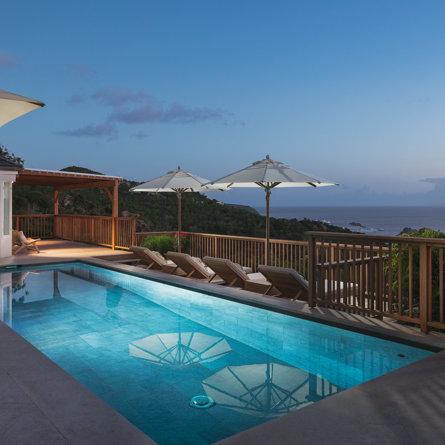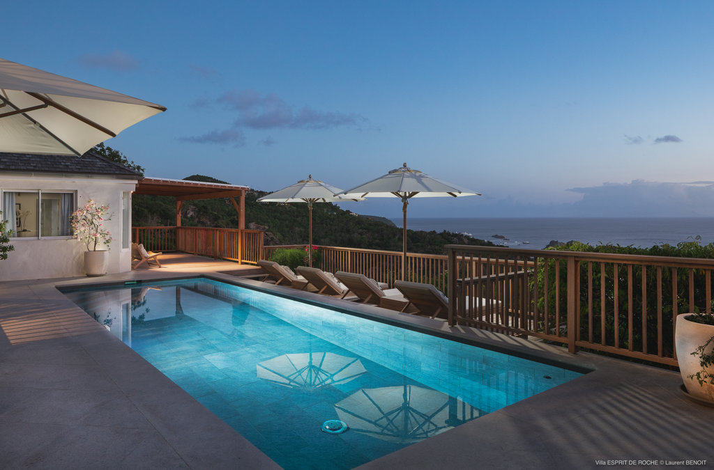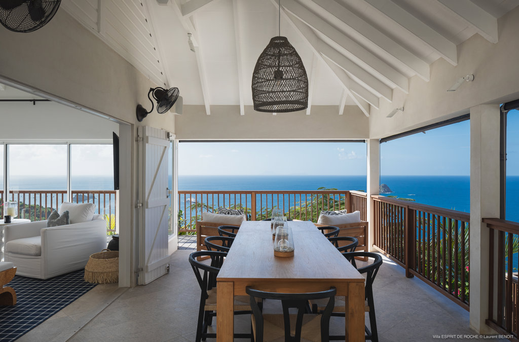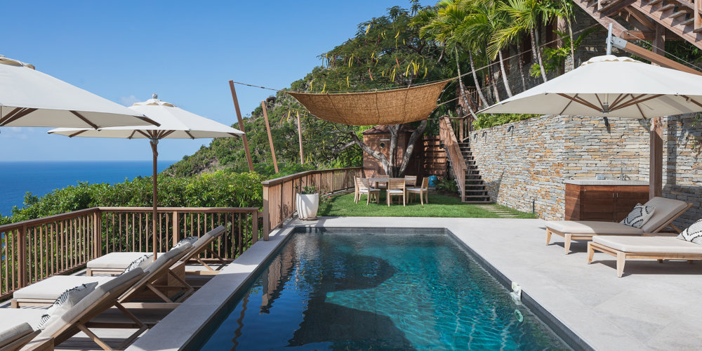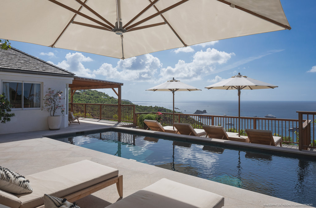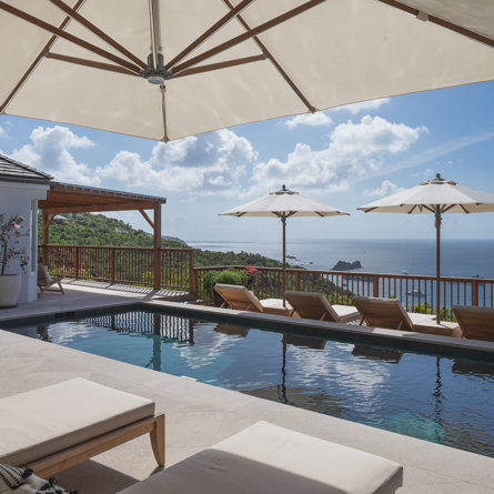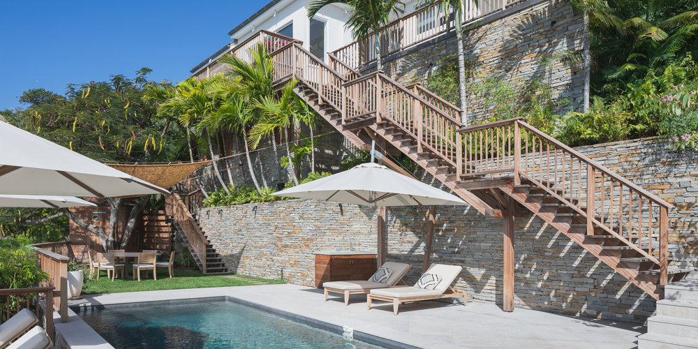 Nestled in the lush hillside of Colombier, Villa Esprit de Roche treats its guests to a private setting featuring panoramic views over the ocean. Recently renovated, this multi-level, fully air-conditioned villa boasts three bedrooms, each with en-suite bathrooms and king beds. Two bedrooms are on the main level and the primary bedroom is situated at the pool level offering direct access to the gazebo. Create meals in the gourmet kitchen and enjoy dining al fresco in the spacious outdoor areas as you admire the sunset over the water.