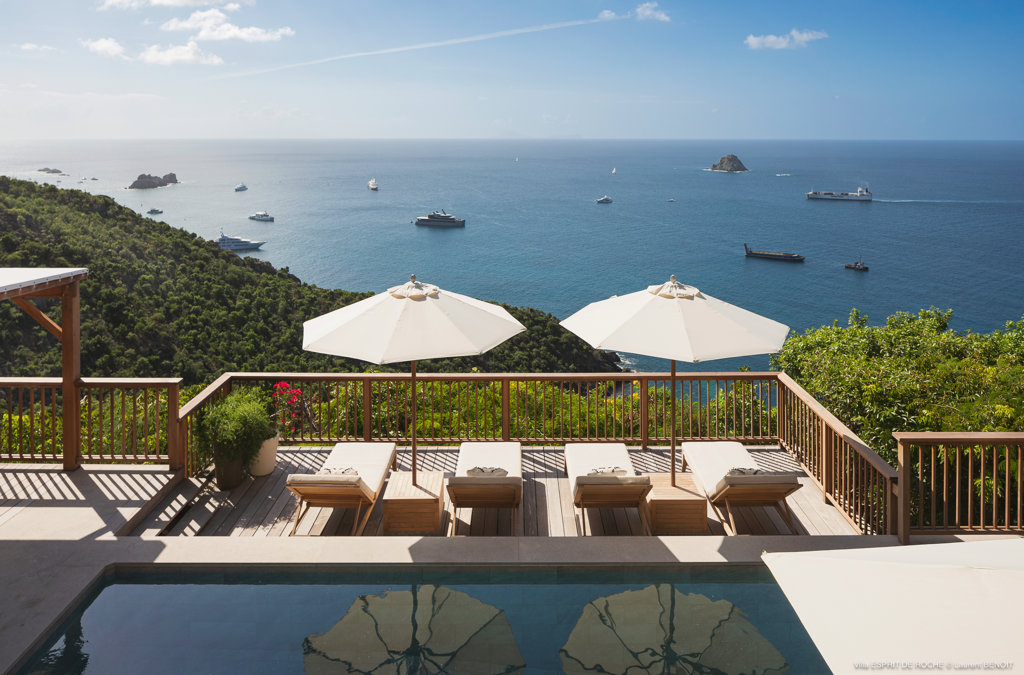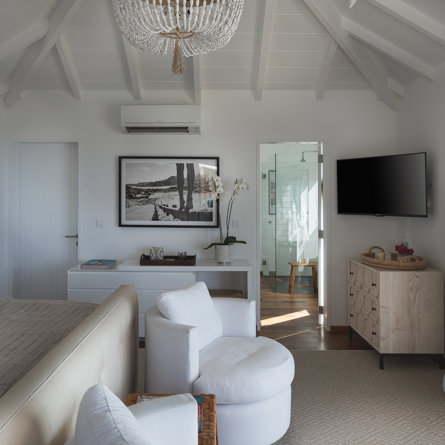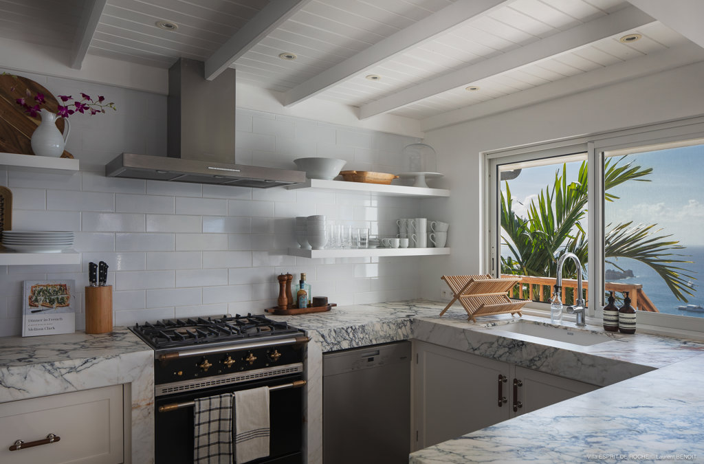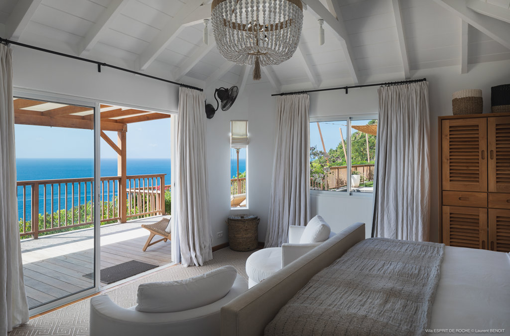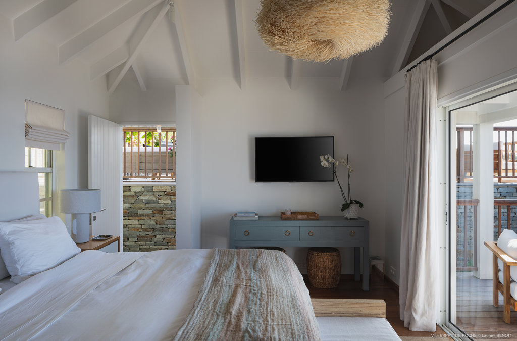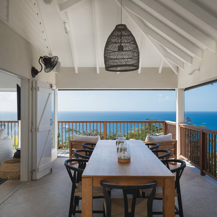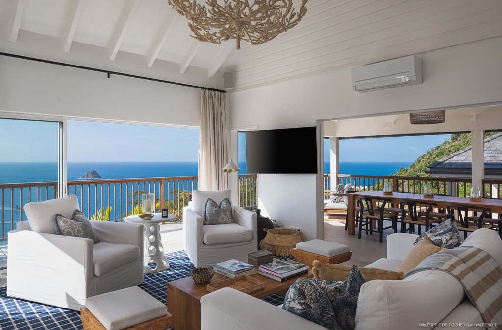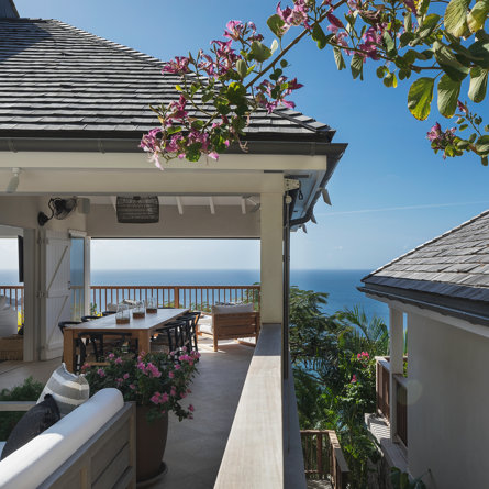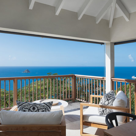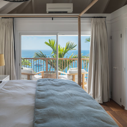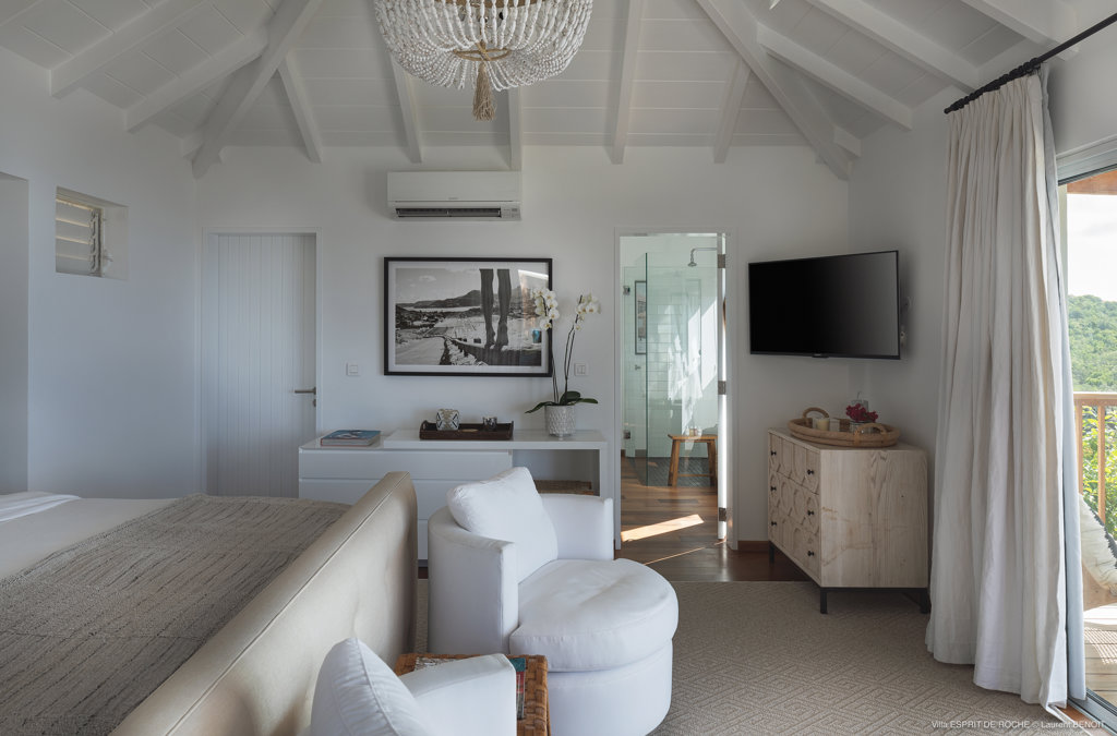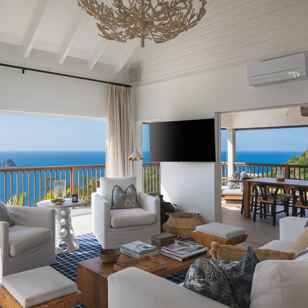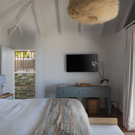 Nestled in the lush hillside of Colombier, Villa Esprit de Roche treats its guests to a private setting featuring panoramic views over the ocean. Recently renovated, this multi-level, fully air-conditioned villa boasts three bedrooms, each with en-suite bathrooms and king beds. Two bedrooms are on the main level and the primary bedroom is situated at the pool level offering direct access to the gazebo. Create meals in the gourmet kitchen and enjoy dining al fresco in the spacious outdoor areas as you admire the sunset over the water.