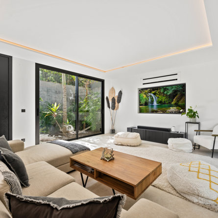 Pool view, Air conditionnng, Sofa, Smart TV, Apple TV, Satellite, Sound system, Guest toilet.