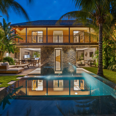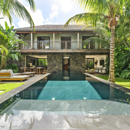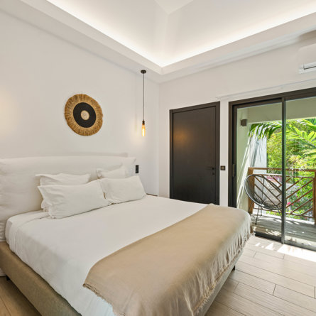 Nestled amidst tropical foliage, Villa Excuse My French beckons with serenity, where the central pool becomes the heart of this verdant retreat. While panoramic views may be absent, the villa's immediate proximity to Flamands Beach provides a tropical haven just moments away. This residence evokes a tranquil jungle ambiance, offering vast outdoor spaces, perfect for intimate family gatherings.