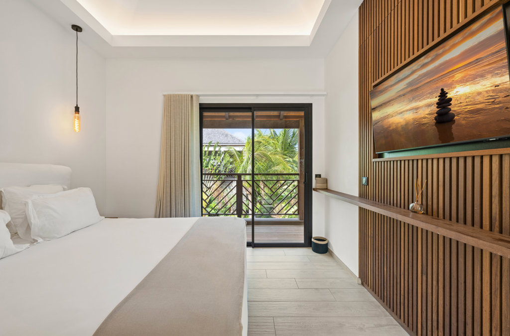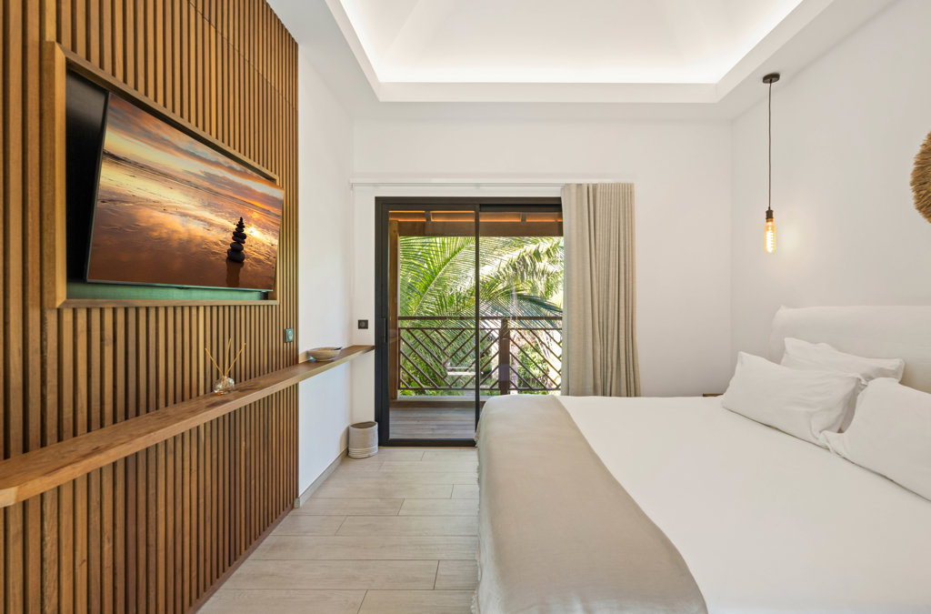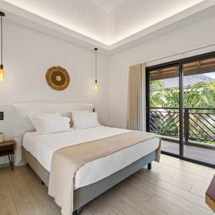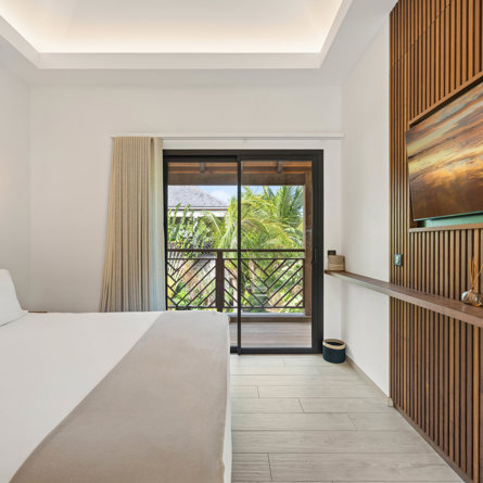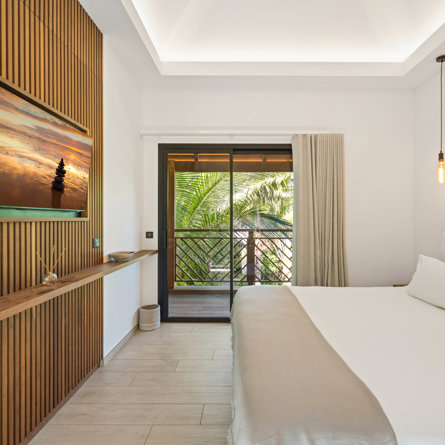 Garden & pool view, Private terrace, Air conditioning, Queen size bed, Closet, Smart TV, Black out curtains, Safe.
