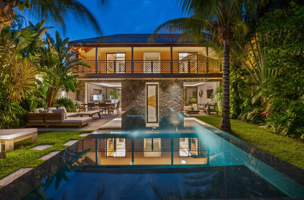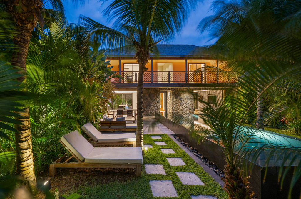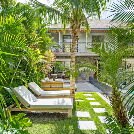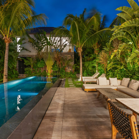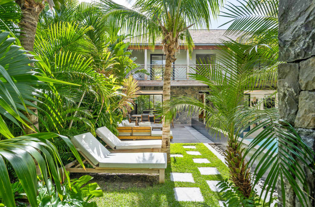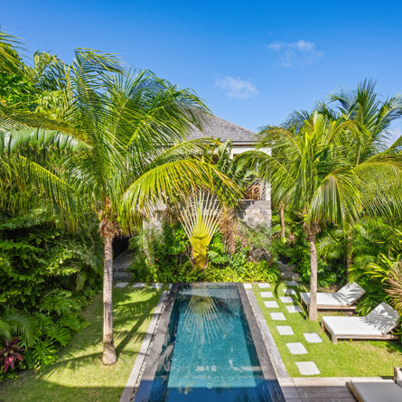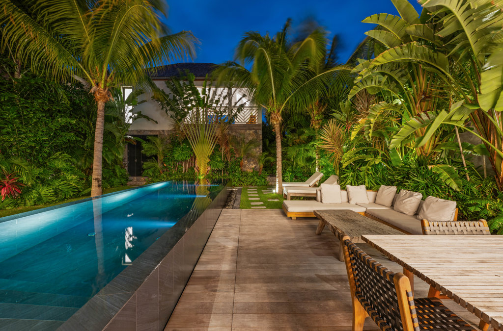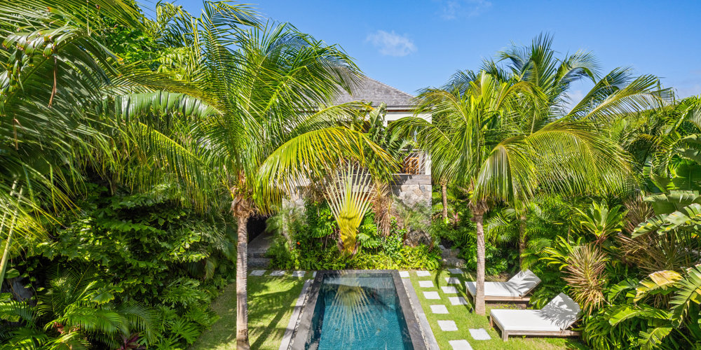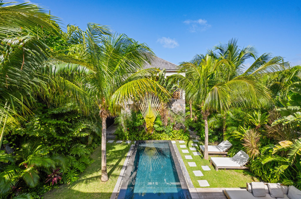 Nestled amidst tropical foliage, Villa Excuse My French beckons with serenity, where the central pool becomes the heart of this verdant retreat. While panoramic views may be absent, the villa's immediate proximity to Flamands Beach provides a tropical haven just moments away. This residence evokes a tranquil jungle ambiance, offering vast outdoor spaces, perfect for intimate family gatherings.