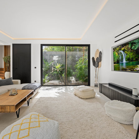 Pool view, Air conditionnng, Sofa, Smart TV, Apple TV, Satellite, Sound system, Guest toilet.