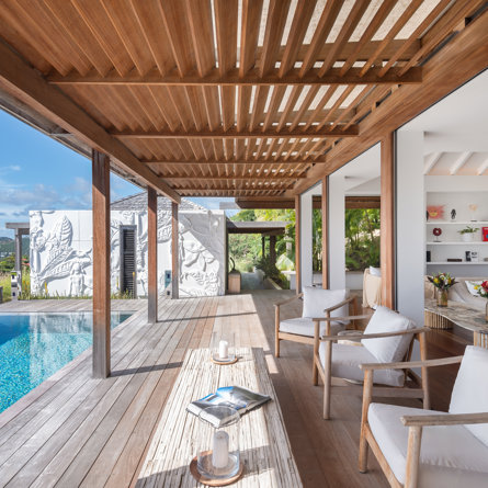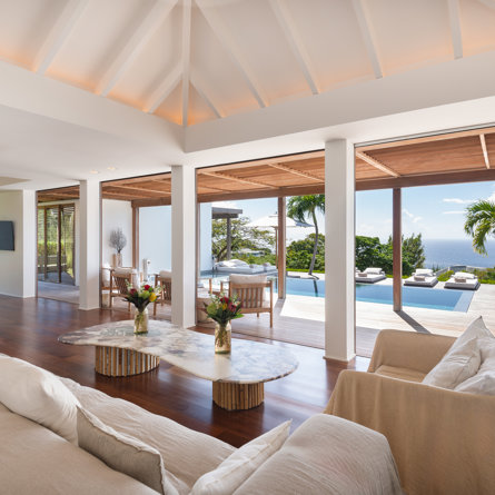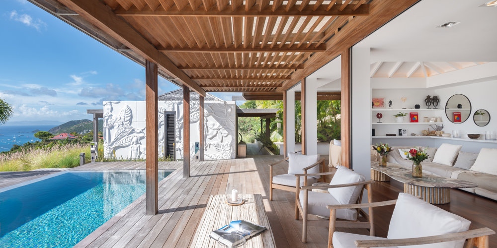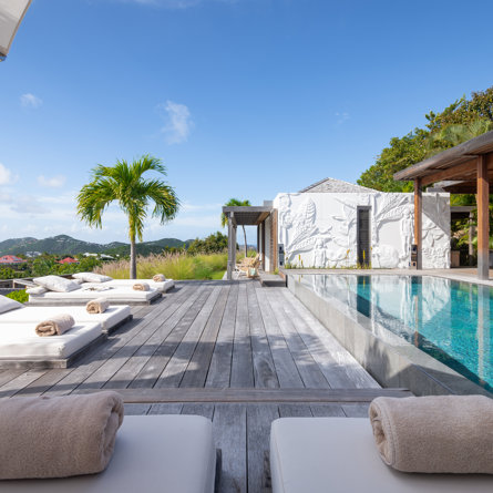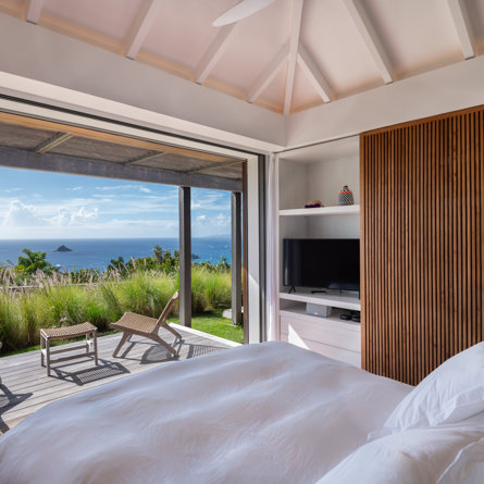 Combining ultra modern interiors with natural beauty, the entire length of living space opens onto the pool deck embracing wide open sea views, this is a setting of sophisticated relaxation for friends to enjoy together. Each en suite bedroom has a private terrace and the kitchen is a stage for gourmets. Gouverneur beach, the boutiques in Gustavia and St Jean Bay are all nearby.