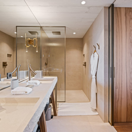 Ensuite bathroom, Walk-in shower, Two sinks, Close toilet.