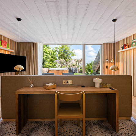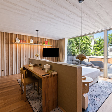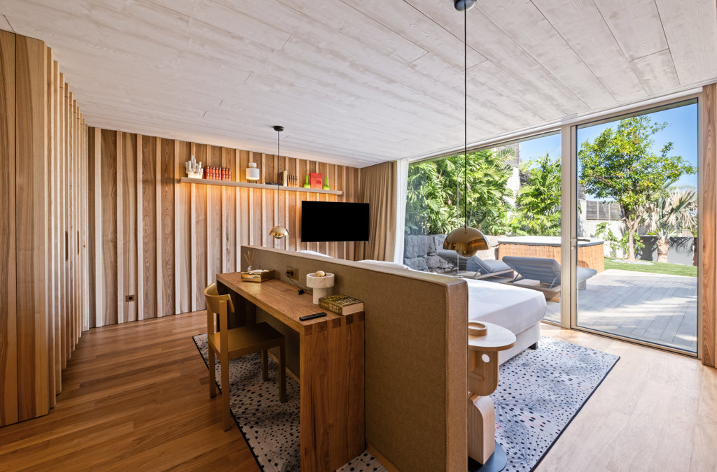 Garden view, Private terrace, Air conditioning, King size bed, Closet, Desk, Smart TV, Black out curtains, Safe.