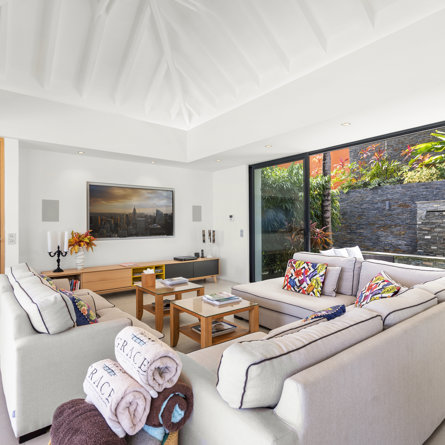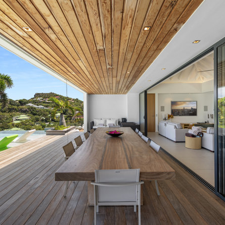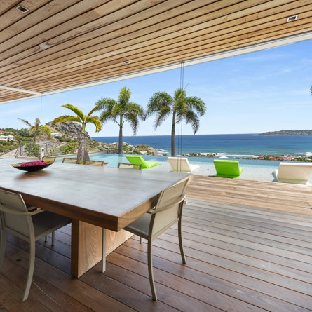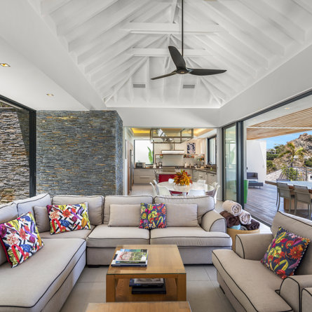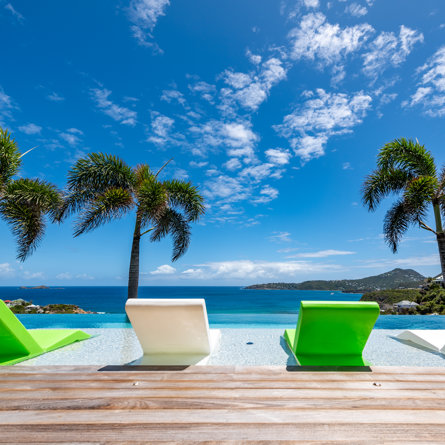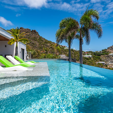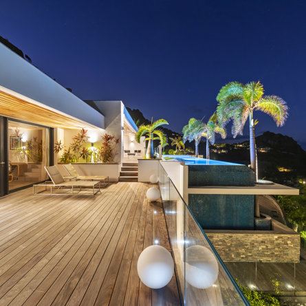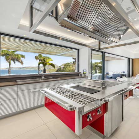 The fun and functional Villa Grace offers equal-size bedrooms and an inviting kitchen for a group of friends looking for a modern, bright house offering a fitness room and an infinity pool that peers over Anse des Cayes.