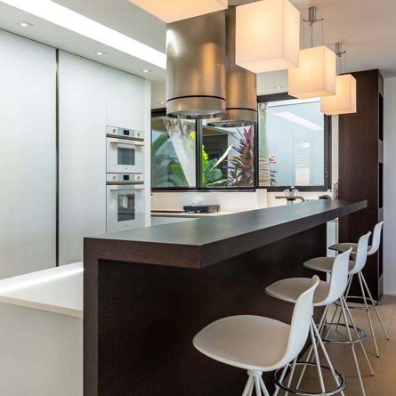 Nespresso machine, Kettle, Fridge, Ice machine, Oven, Microwave, Blender, Toaster, Dishwasher, Air conditioning.