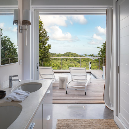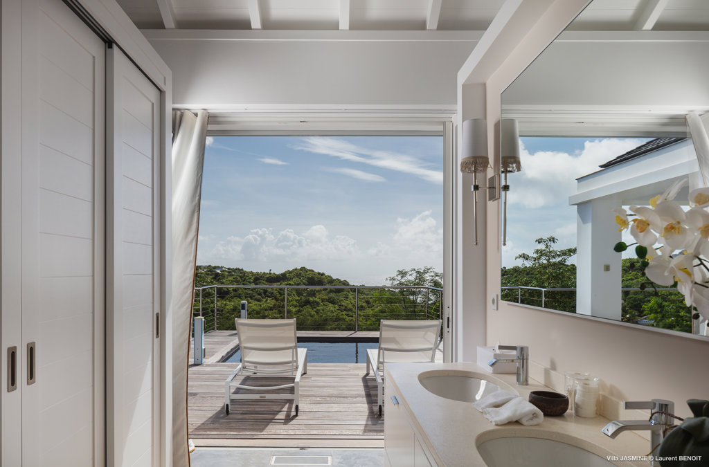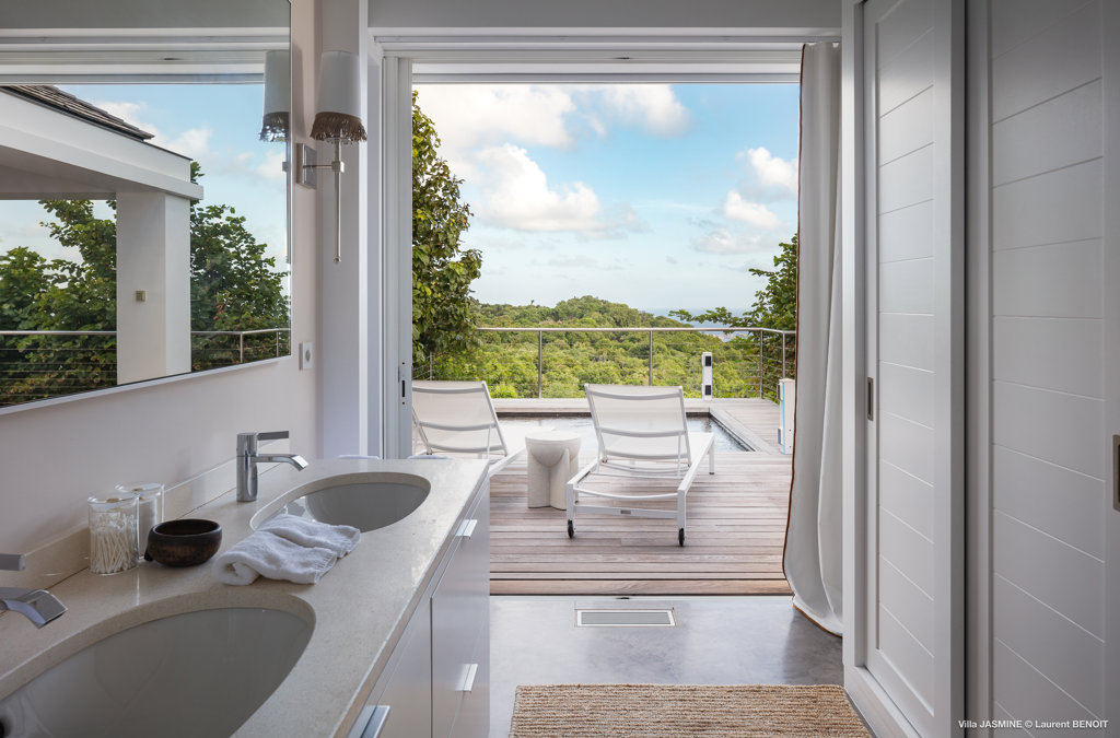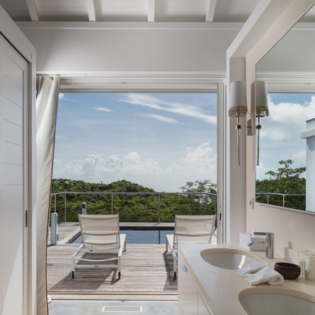 Mountain-facing and tucked into a very peaceful gated area, the ultra-serene Villa Jasmine offers ultimate privacy for rooms 3 and 4 and competing views over Gouverneur Beach to one side and St Jean Bay to the other.