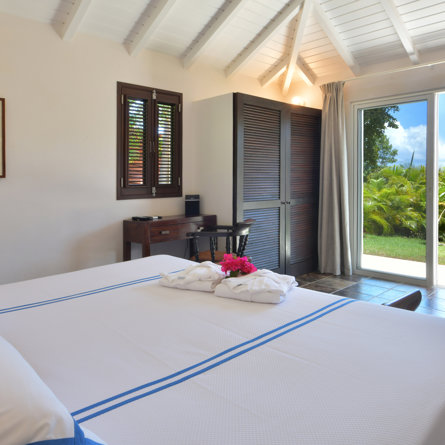 Garden view, Terrace, Air conditioning, Fan, King size bed, Closet, Desk, Smart TV, Apple TV, Black out curtains, Mosquito screen, Safe.