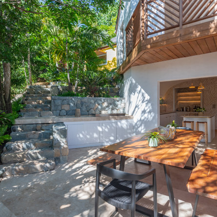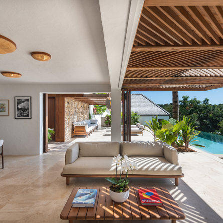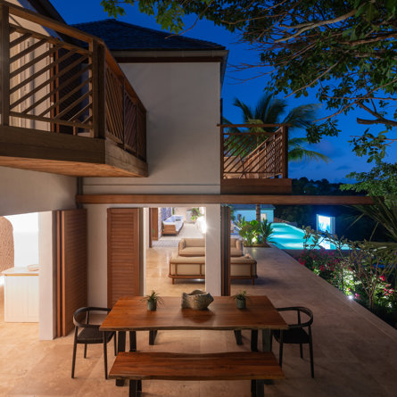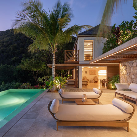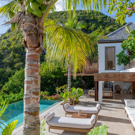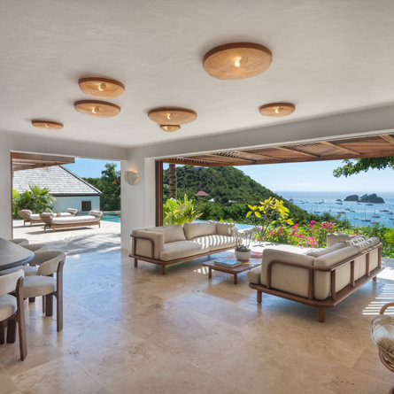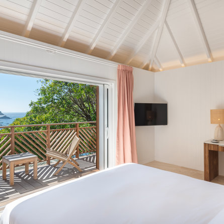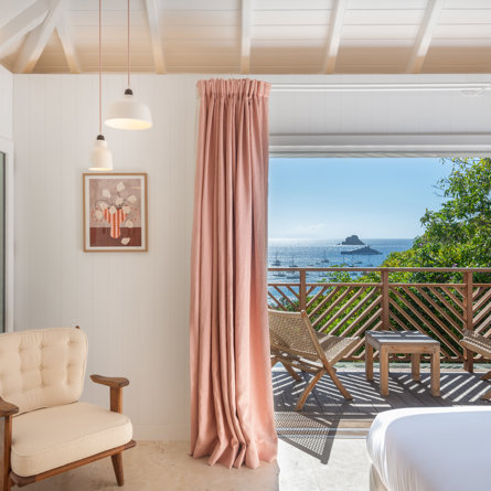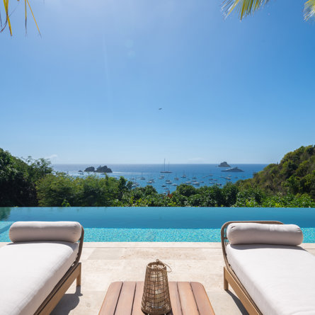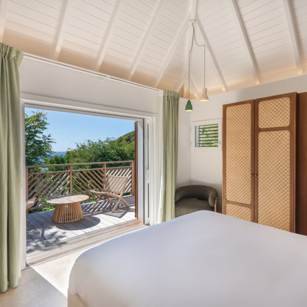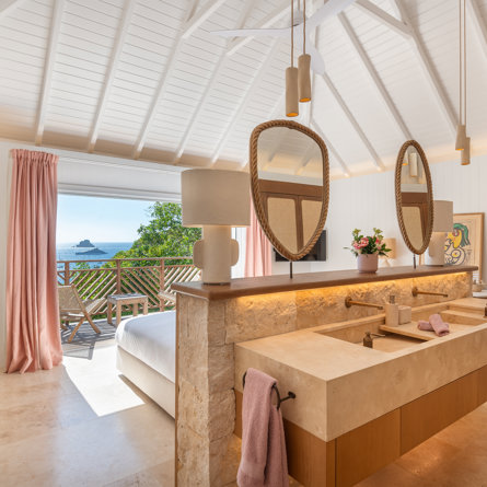 Positioned in the hills of picturesque Corossol, Villa La Bulle exudes island charm with its bright wood interiors and breathtaking ocean and mountain views. The villa features four private bungalows, each with its own bedroom, for total privacy. The open-plan living room and kitchen are perfect for socialising, while the pool is the perfect spot to catch the Caribbean breeze.