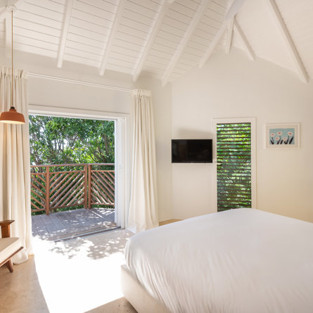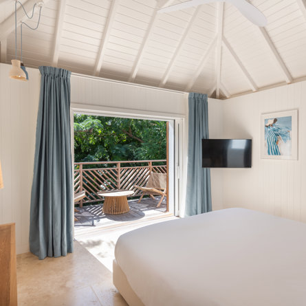 Private terrace, Air conditioning, Queen size bed, Closet, Desk, Smart TV, Apple TV, Sound system, Curtains, Mosquito screen, Safe.