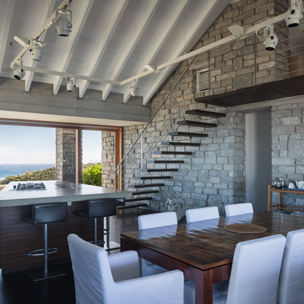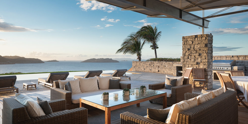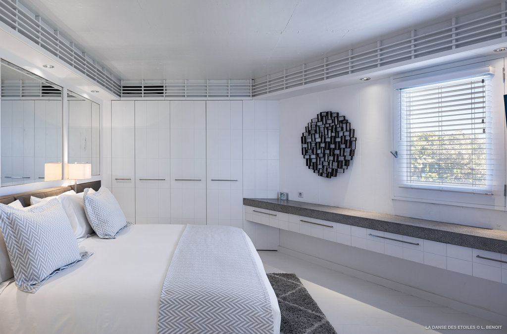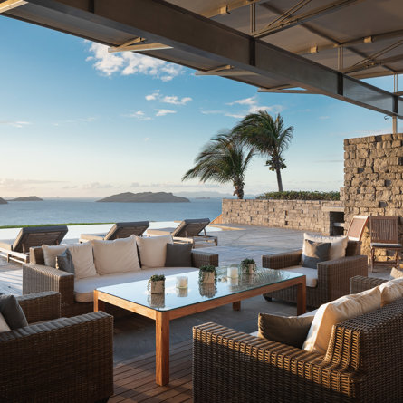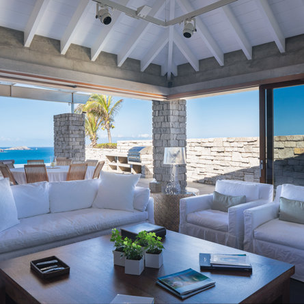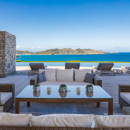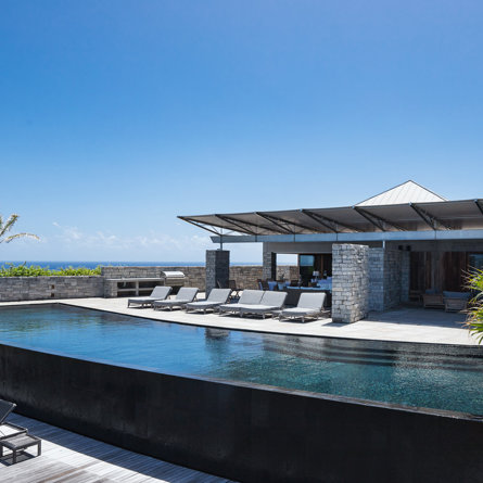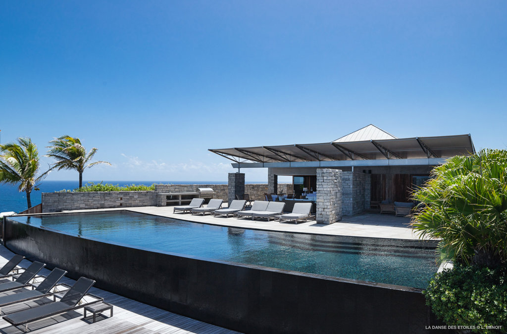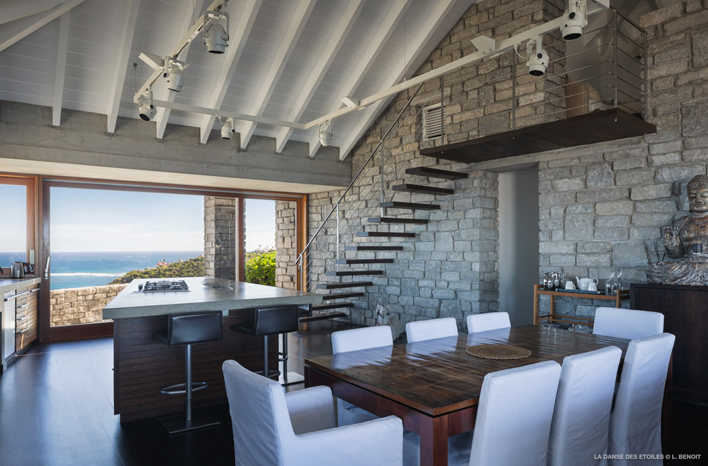 La Danse des Etoiles is a striking, air-conditioned villa with rich wood floors offering three main floor and two lower-level bedrooms for a family with teenagers or a group of friends, and featuring a massage room and fitness room, while the incredibly spacious outside area boasts a pool table and refined sundeck for a convivial gathering to watch the sunset over St Jean and Lorient thanks to this villa’s double viewpoints.