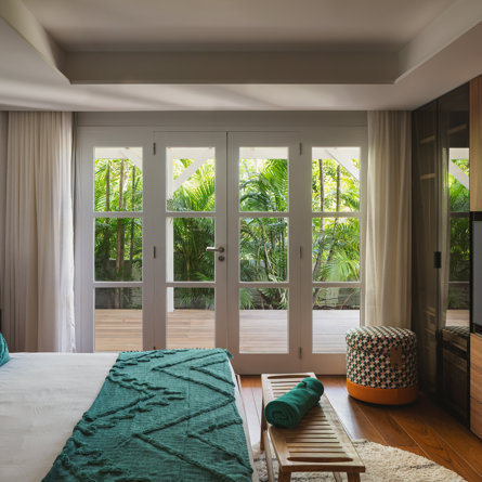 Garden view, Private Terrace, Air conditioning, Queen size bed, Closet, Smart TV, Apple TV, Netflix, Sound system, Safe.