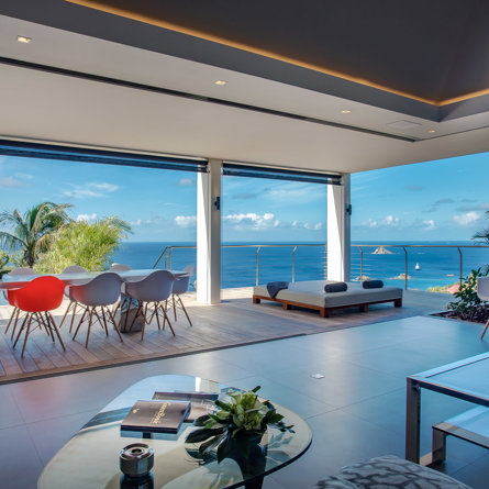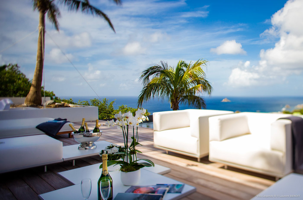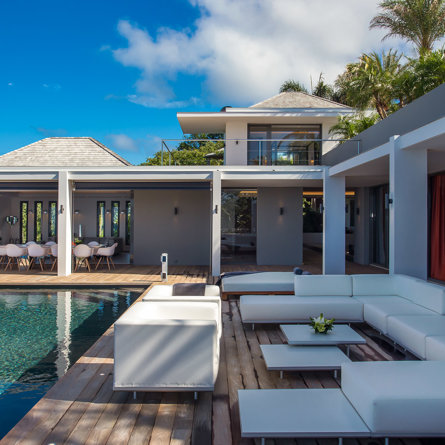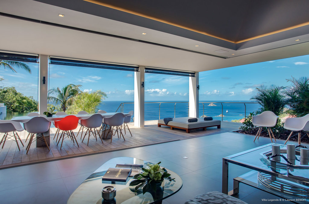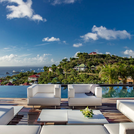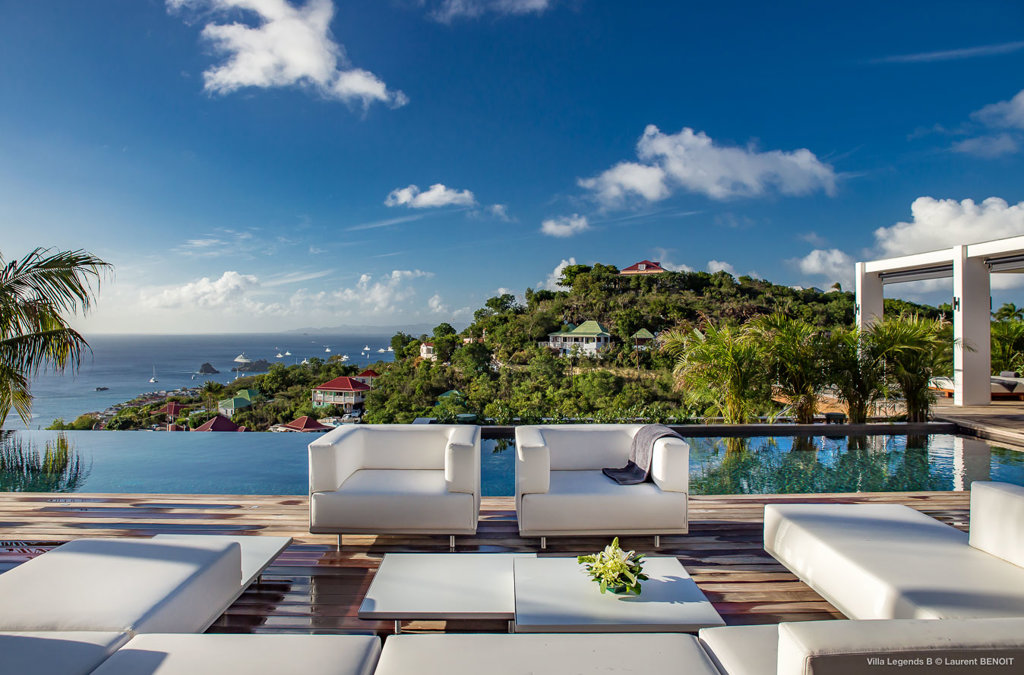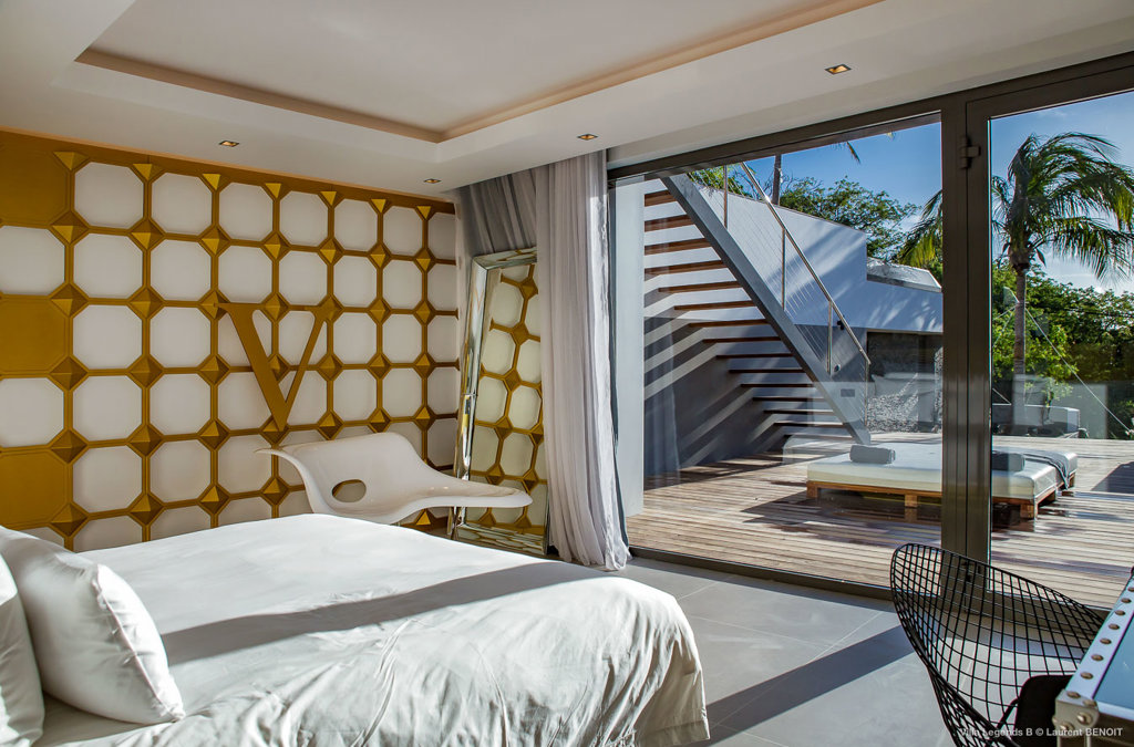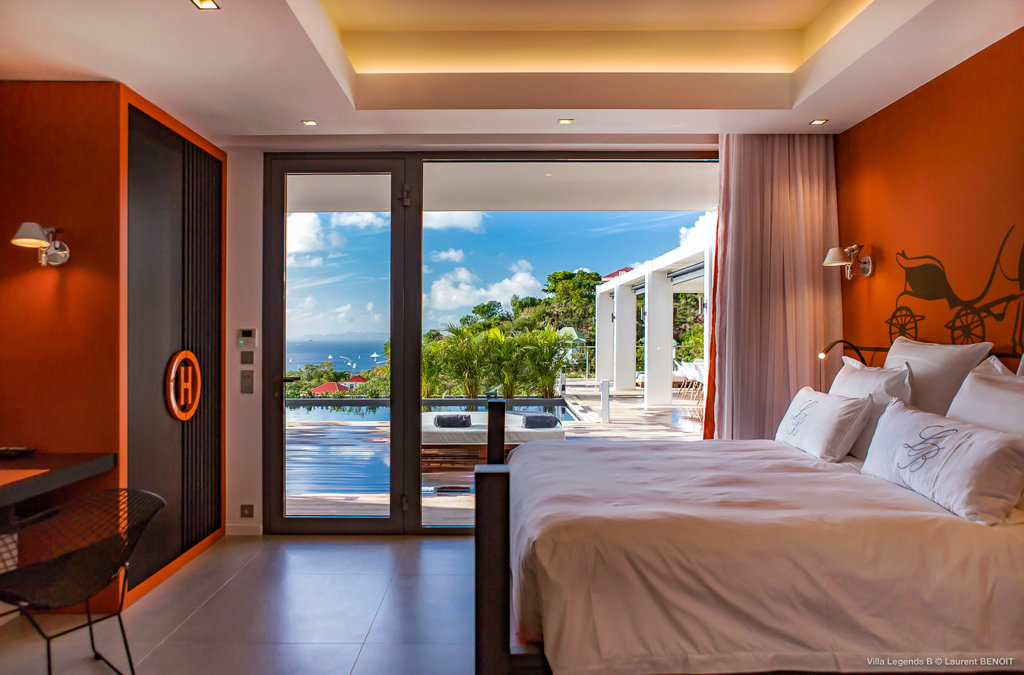 Fashion-forward friends will delight in the charming three-level Villa Legends B with its five designer themed bedrooms in modern décor to channel the glamour of Chanel, Vuitton, Hermes, Saint Laurent or Bulgari — this fully air-conditioned home features a fitness room and sunset views over Lurin and Gustavia.