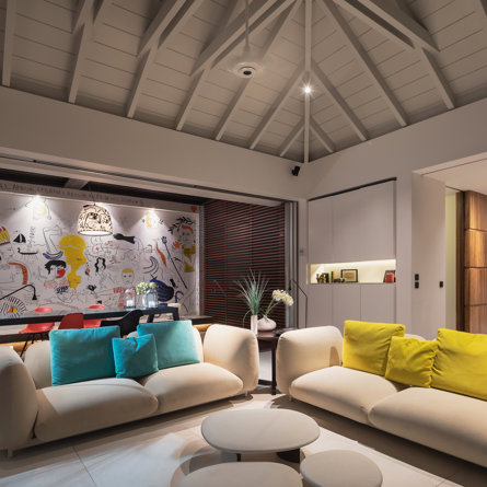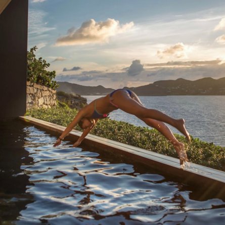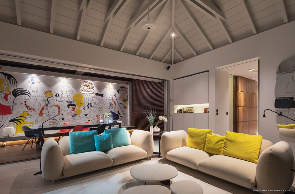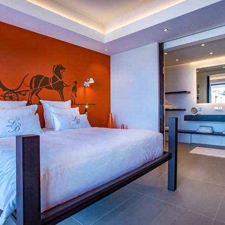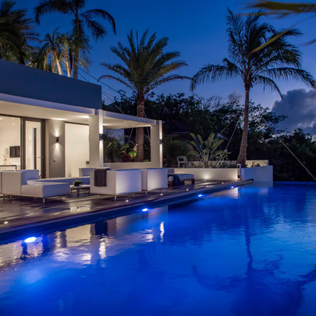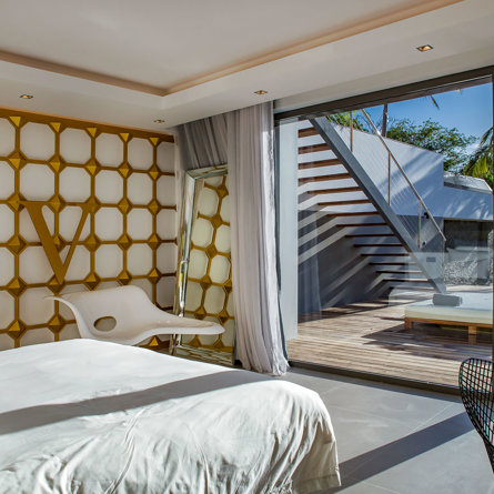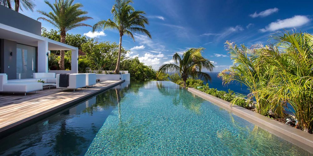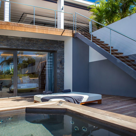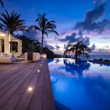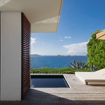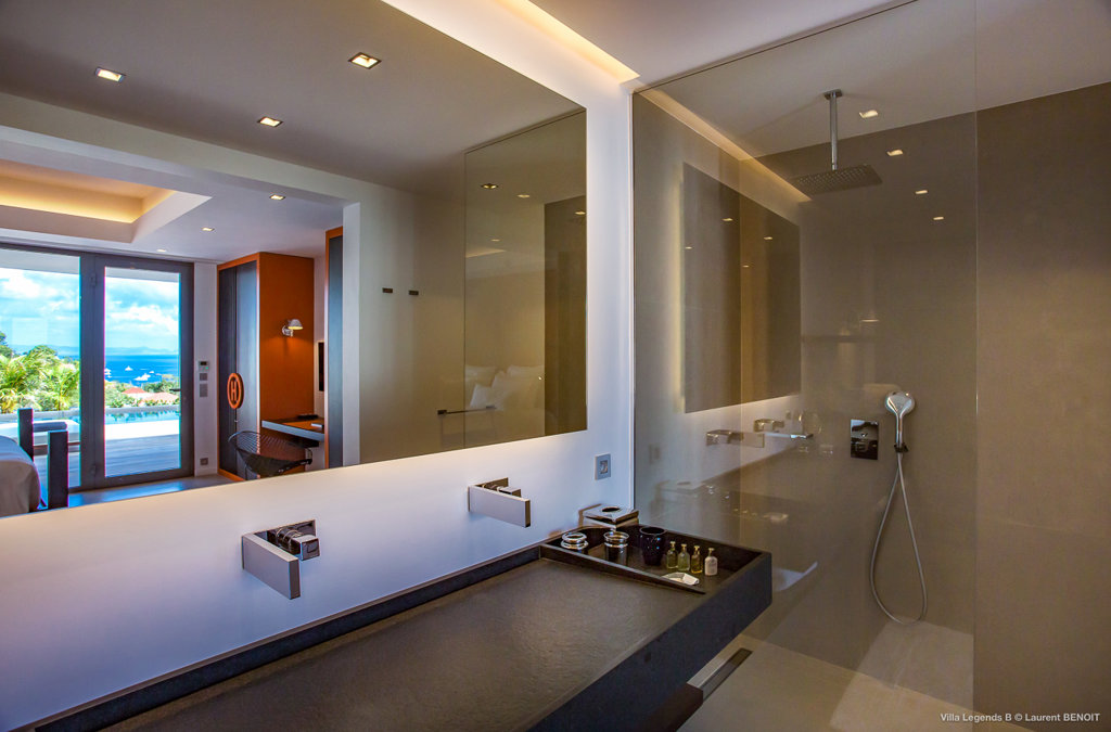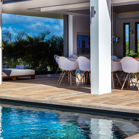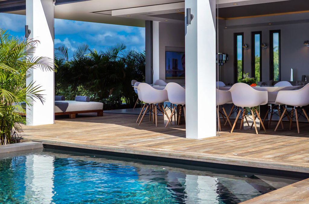 Fashion-forward friends will delight in the charming three-level Villa Legends B with its five designer themed bedrooms in modern décor to channel the glamour of Chanel, Vuitton, Hermes, Saint Laurent or Bulgari — this fully air-conditioned home features a fitness room and sunset views over Lurin and Gustavia.